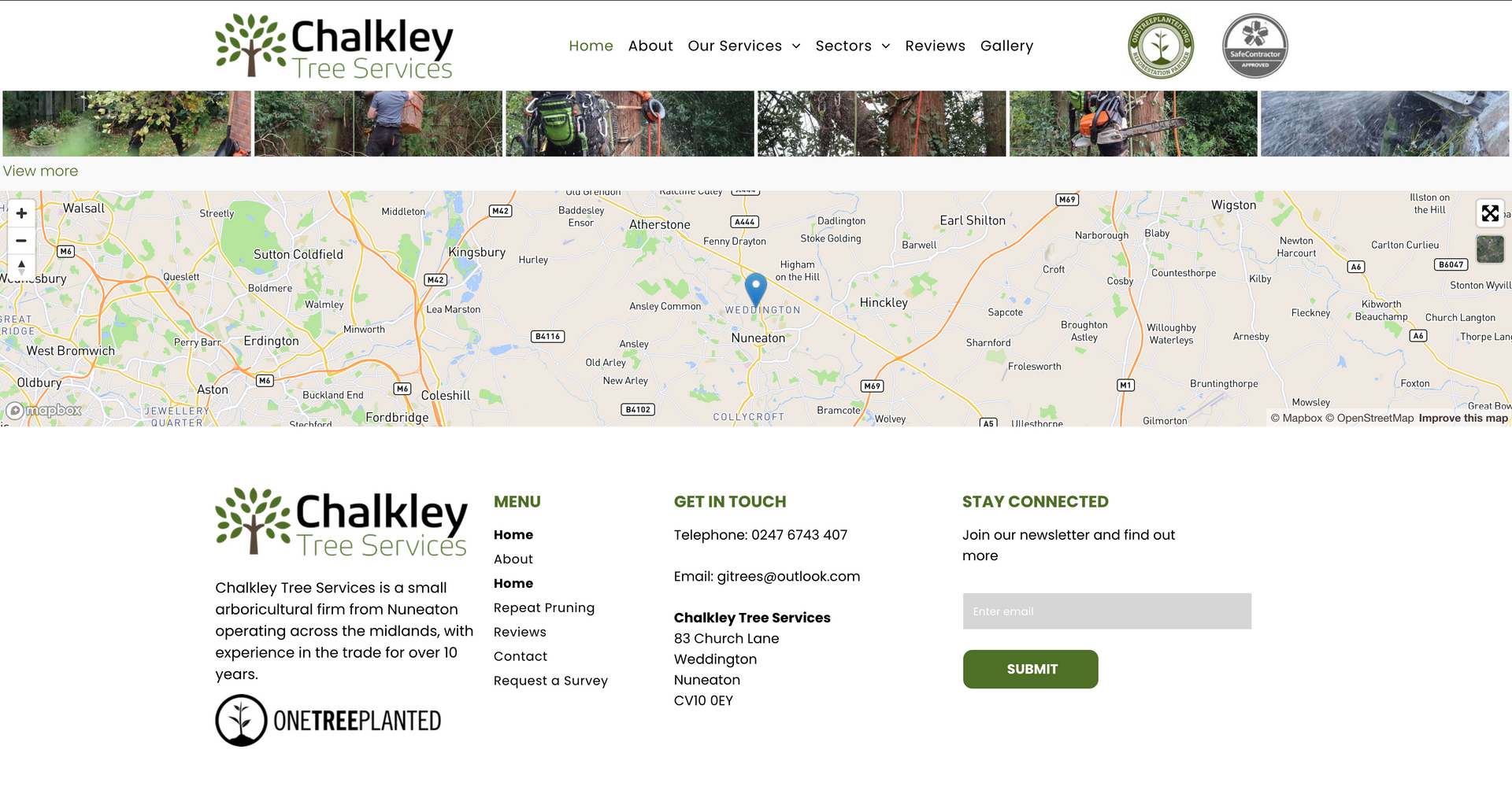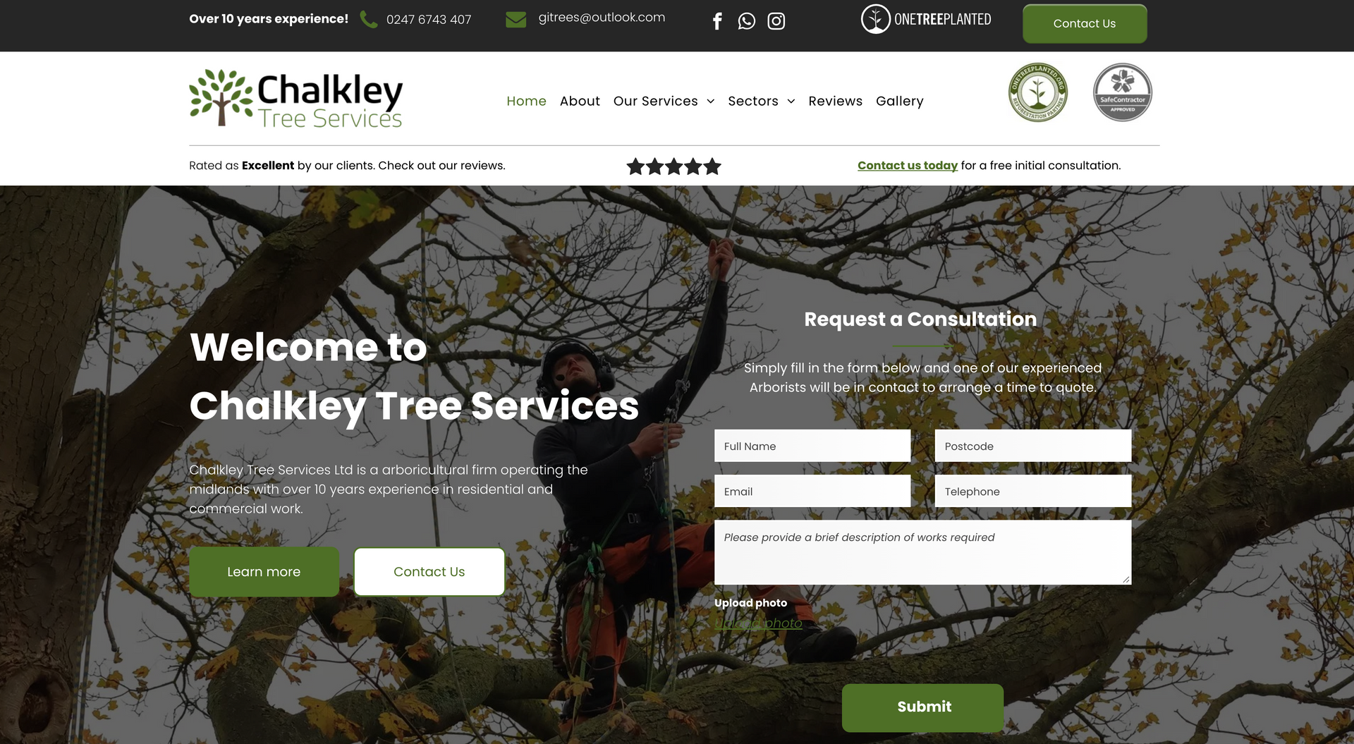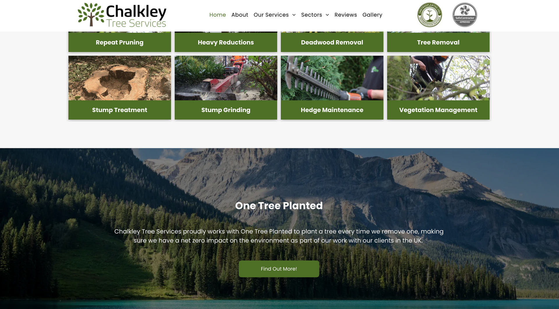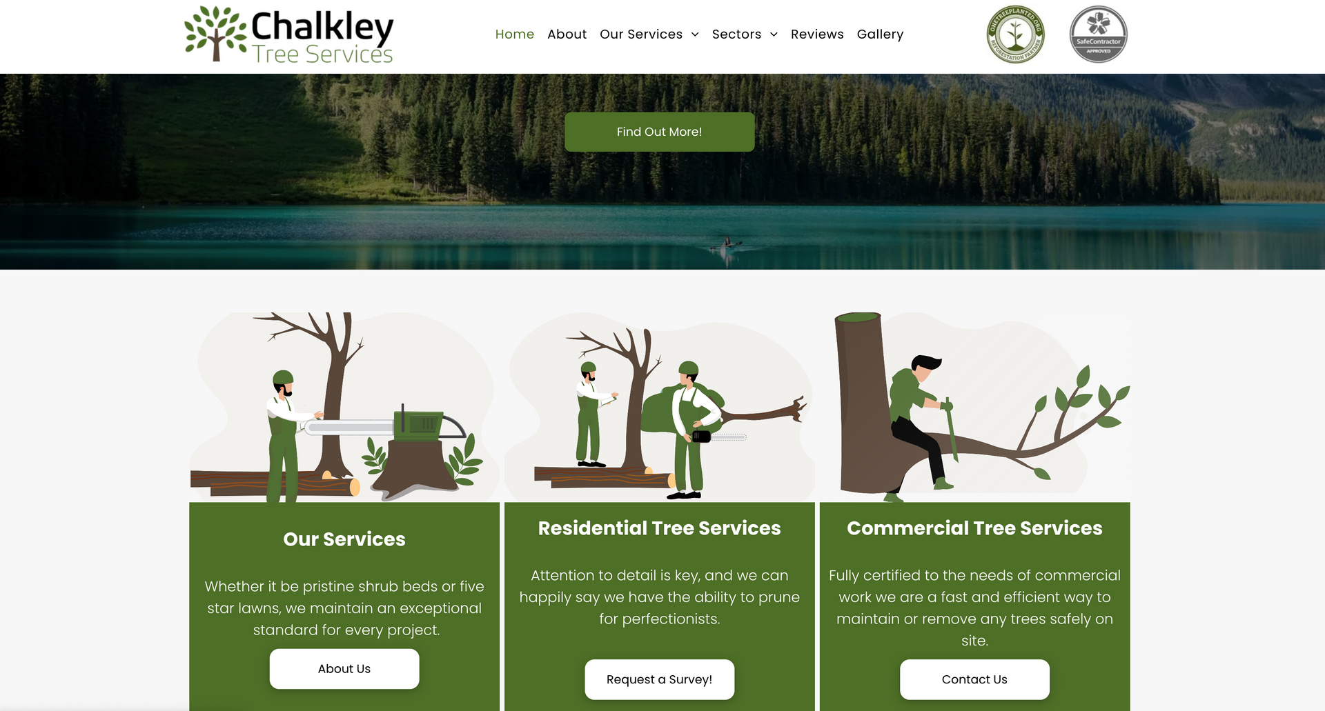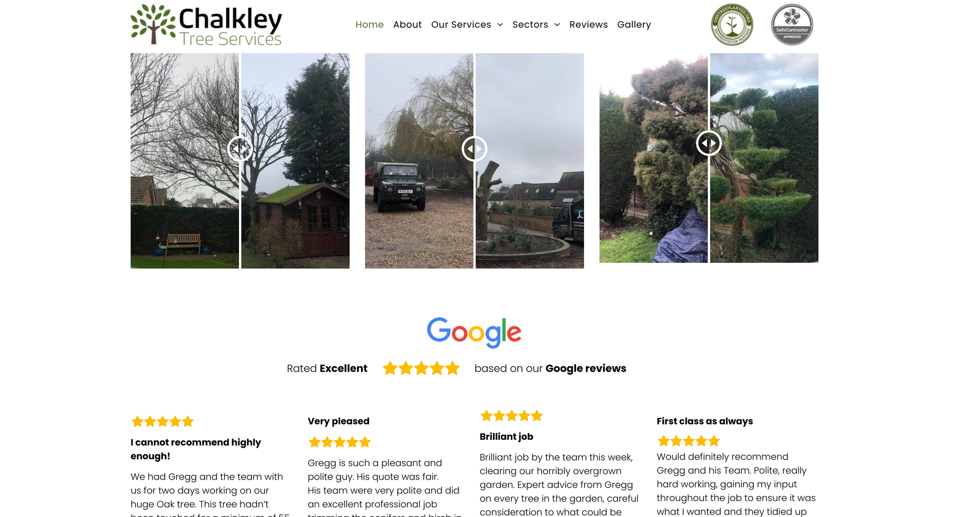 Chalkley tree services is a small arboricultural firm operating within the east midlands, servicing both residential gardens and large scale operations. As mentioned on the homepage, Chalkley tree services thrives on regular customers, the main purpose of the website is to showcase the work and explain services. It was important when building the site to keep a friendly, inviting atmosphere through conversational tone and graphics. Including customer reviews heavily based on the staff aids in showcasing the high quality customer service.