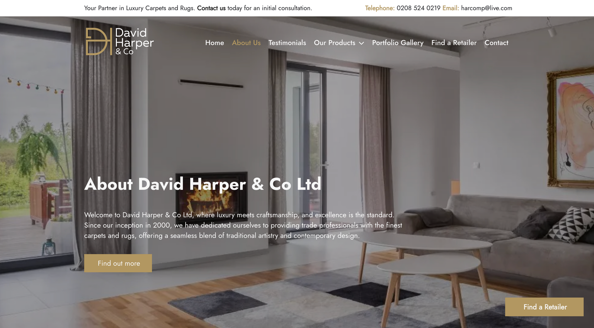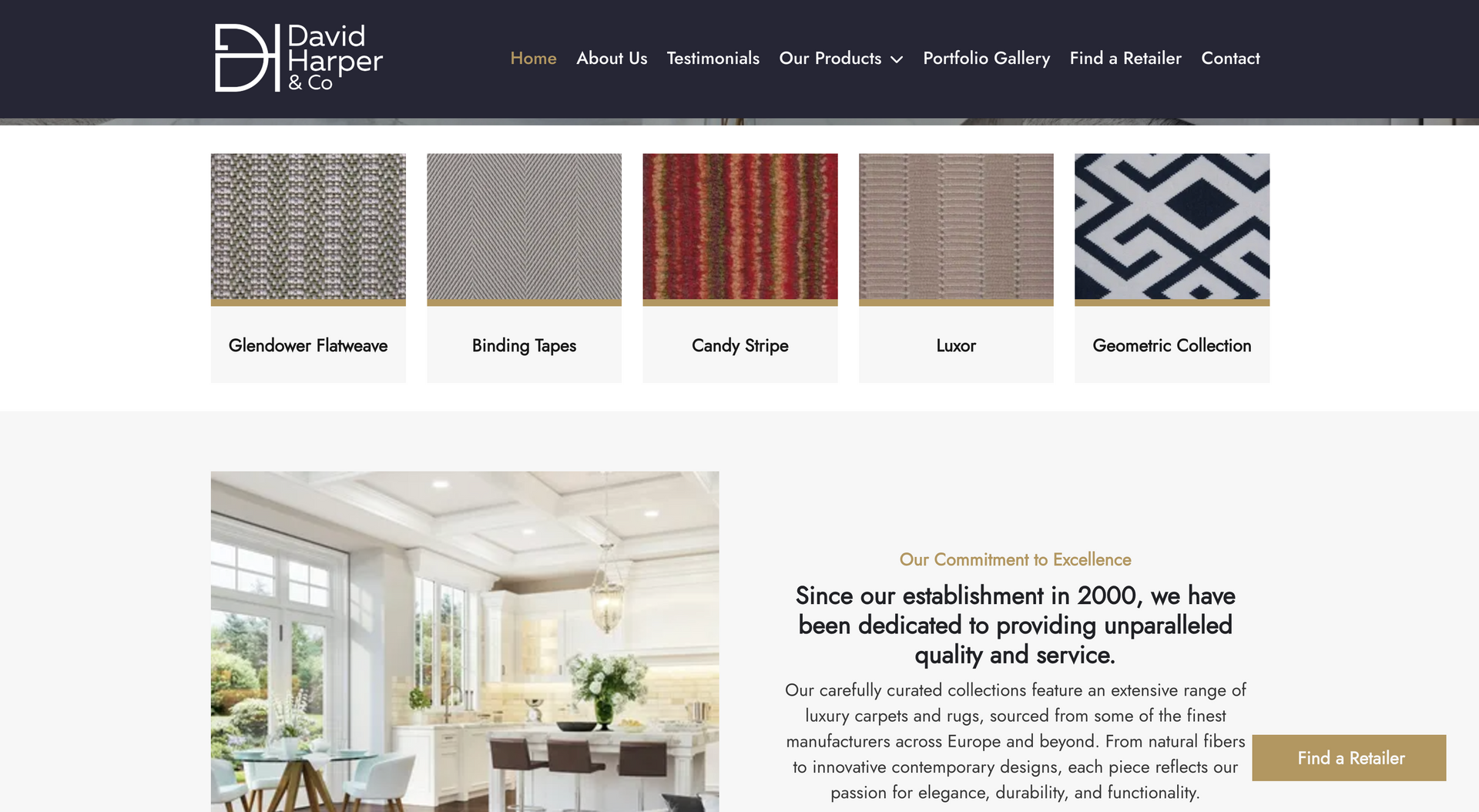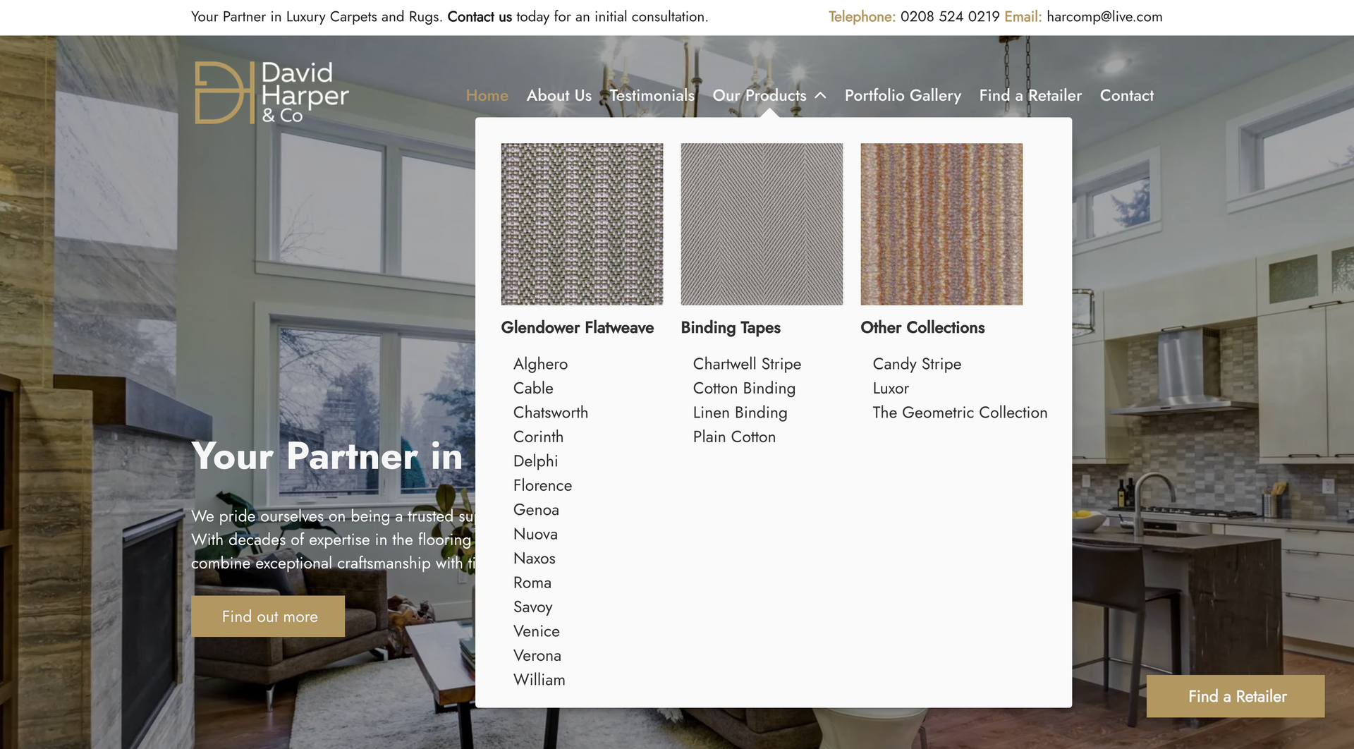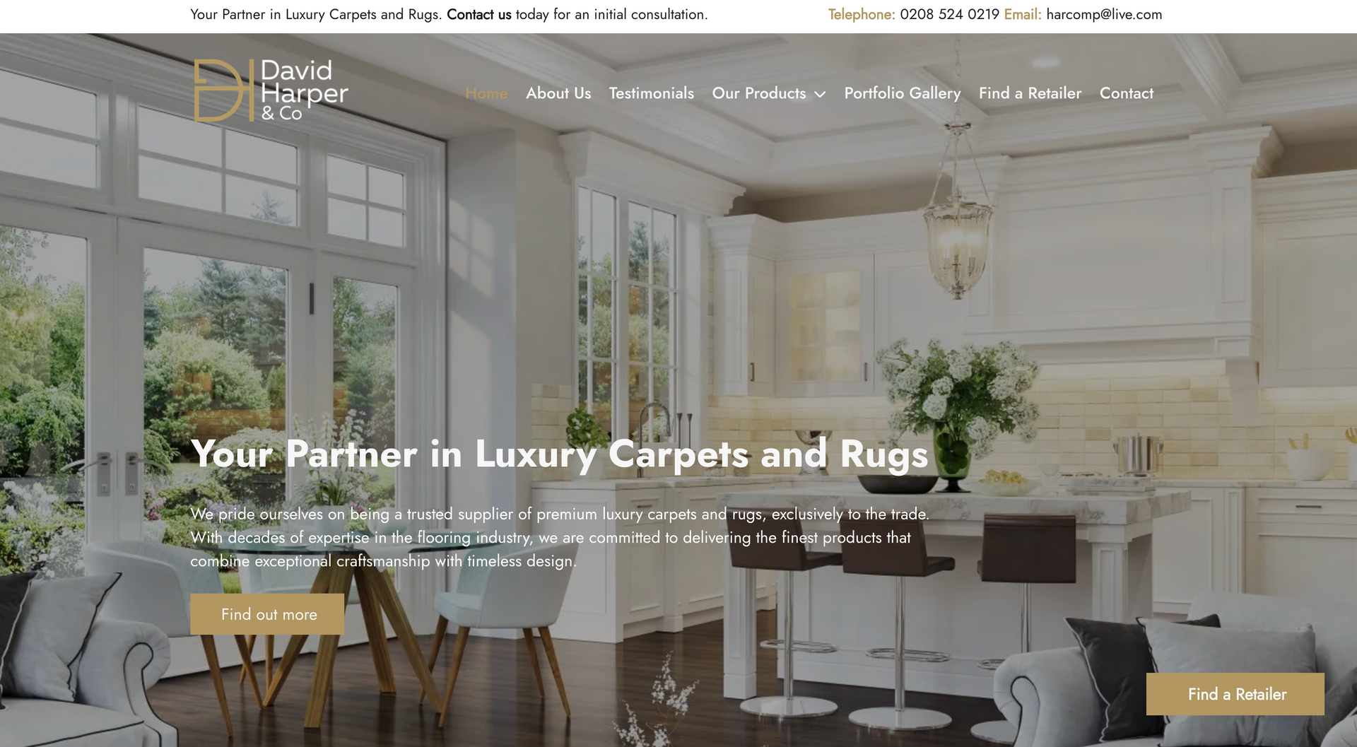 David Harper Luxury Carpets and Rugs supply the aforementioned to trade professionals. Although they do not sell straight to end customers, the company has been working with trade professionals and retailers to supply luxury products since 2000. When they contacted Marcel Media, the end goal was to have a beautifully crafted website, showcasing the products while creating a luxurious atmosphere. As well as fulfilling this, Marcell Media has created a ‘redirectory’, prompting potential retail customers in the direction of stockists, capturing the epitome of luxury - convenience.
