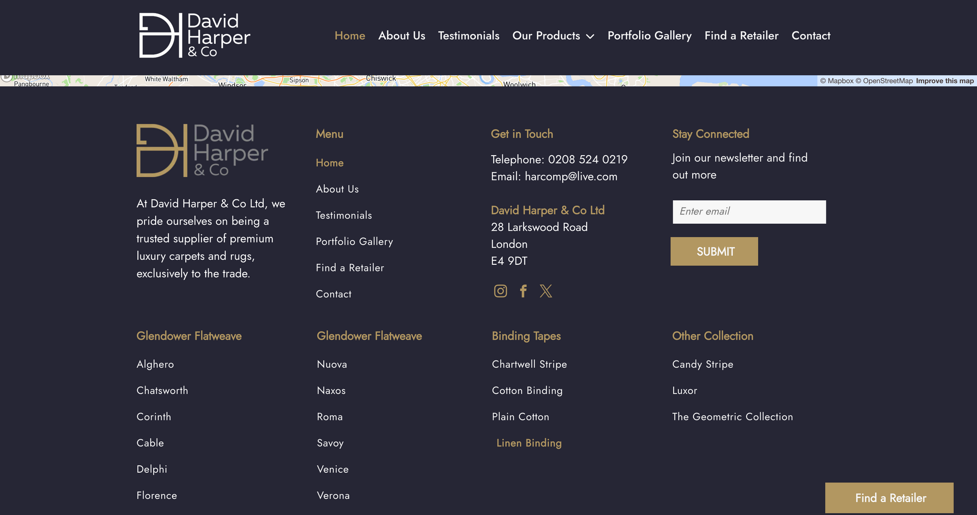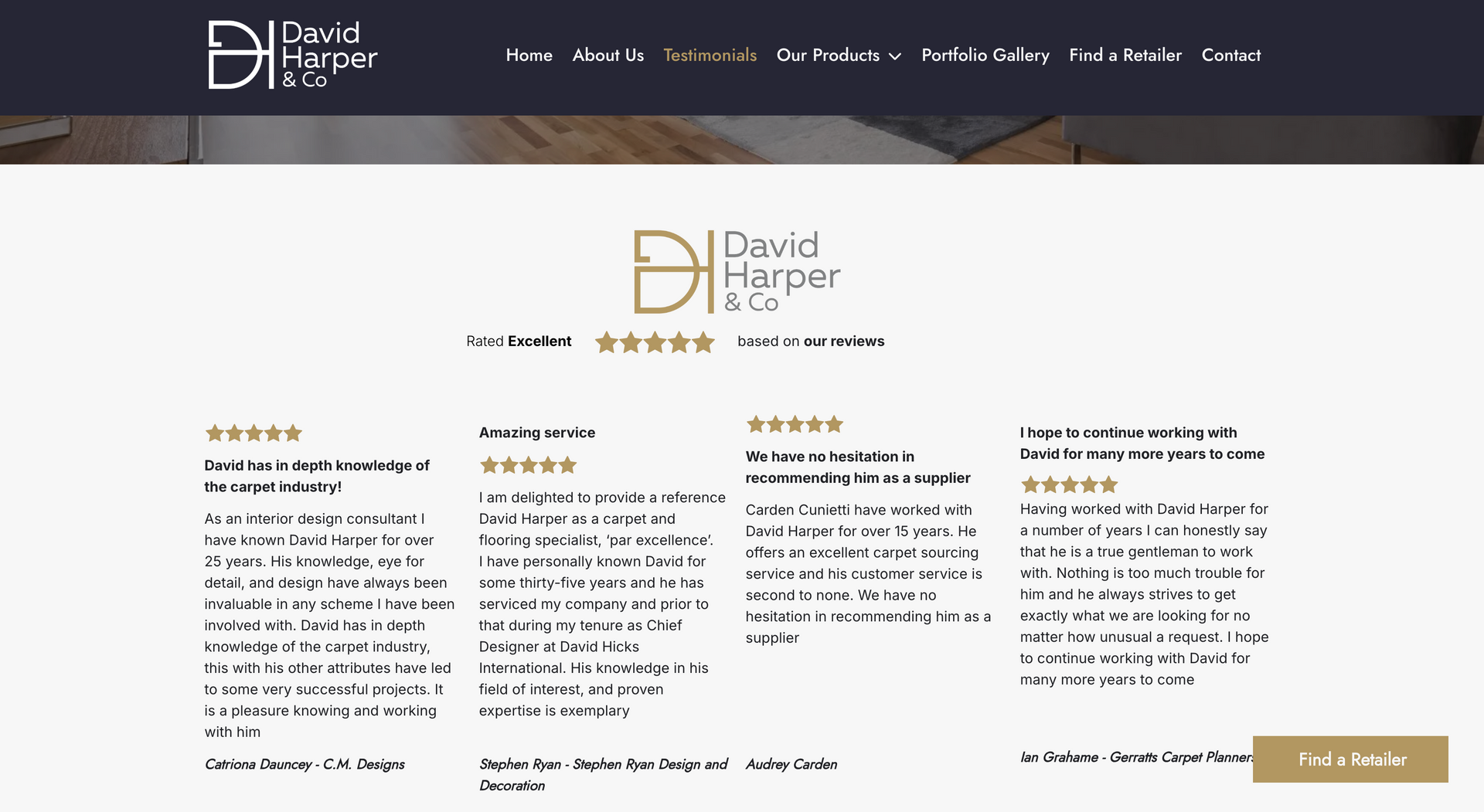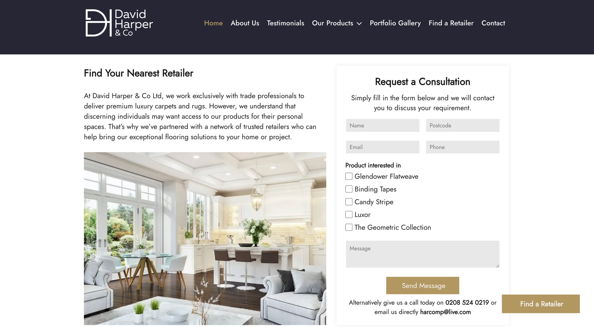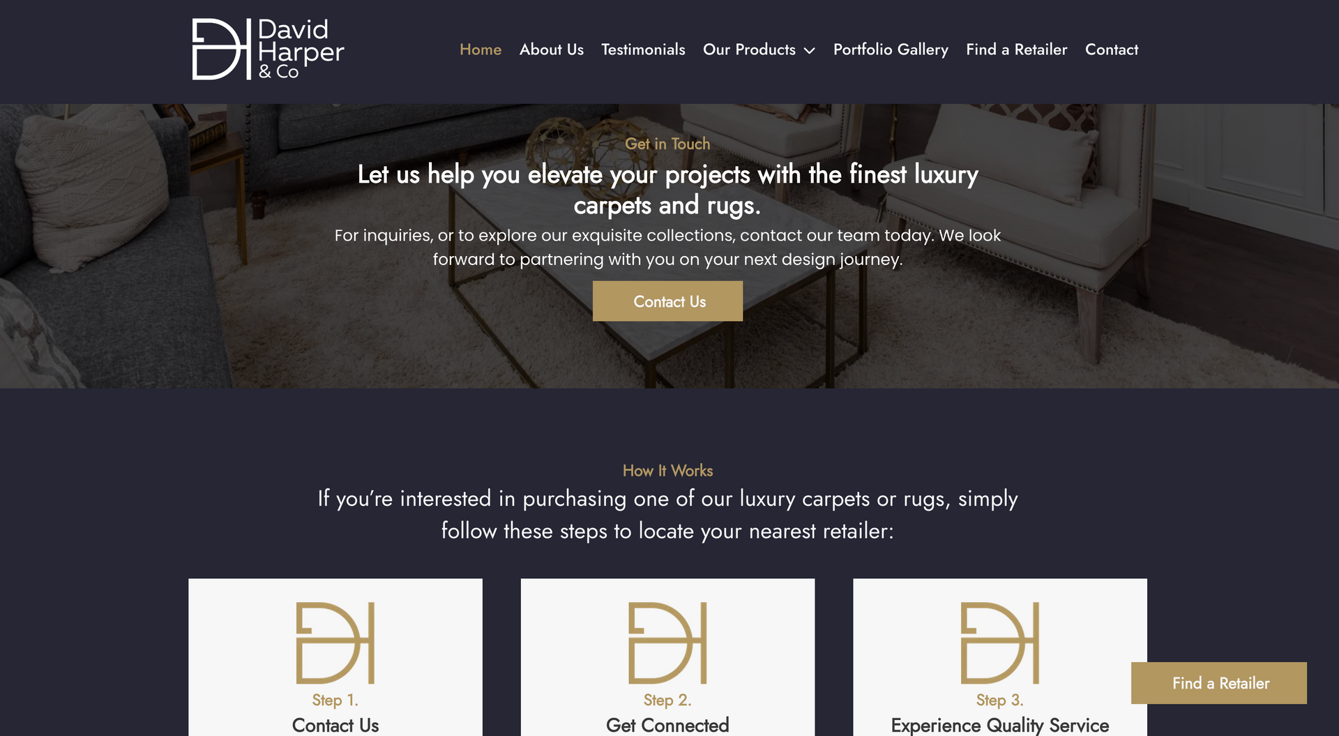 David Harper Luxury Carpets and Rugs supply the aforementioned to trade professionals. Although they do not sell straight to end customers, the company has been working with trade professionals and retailers to supply luxury products since 2000. When they contacted Marcel Media, the end goal was to have a beautifully crafted website, showcasing the products while creating a luxurious atmosphere. As well as fulfilling this, Marcell Media has created a ‘redirectory’, prompting potential retail customers in the direction of stockists, capturing the epitome of luxury - convenience.