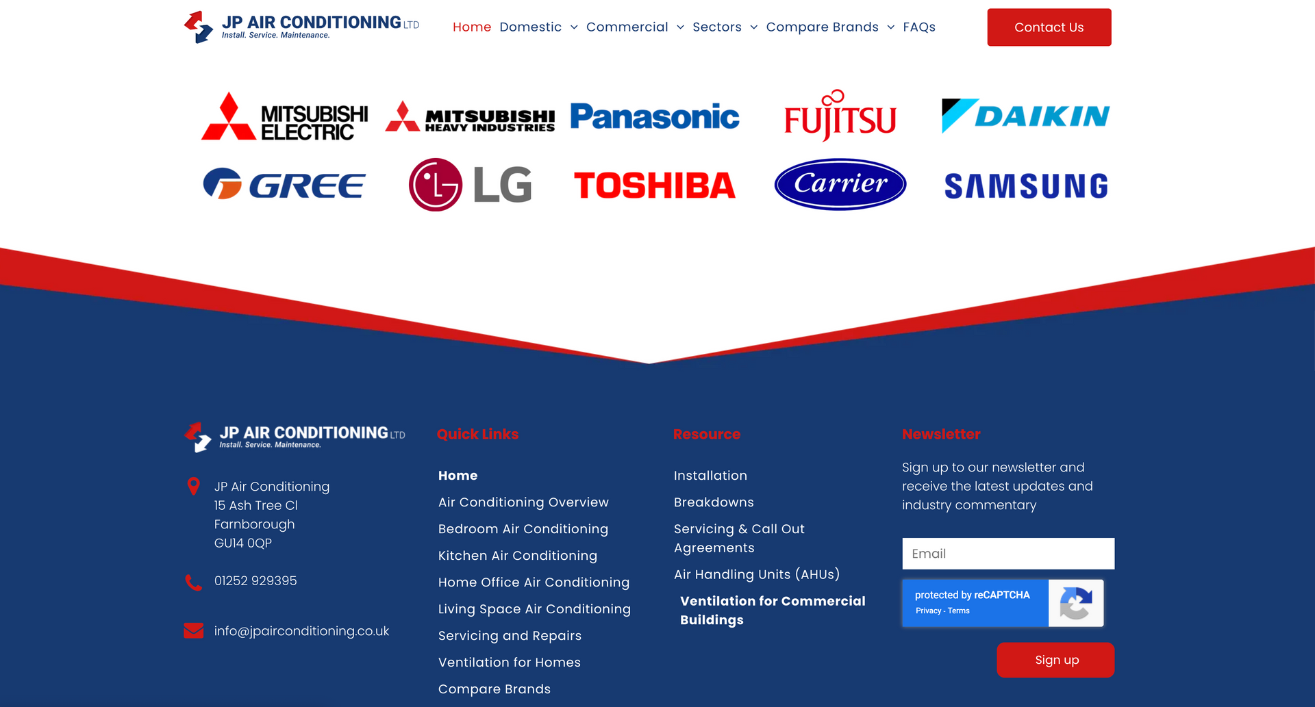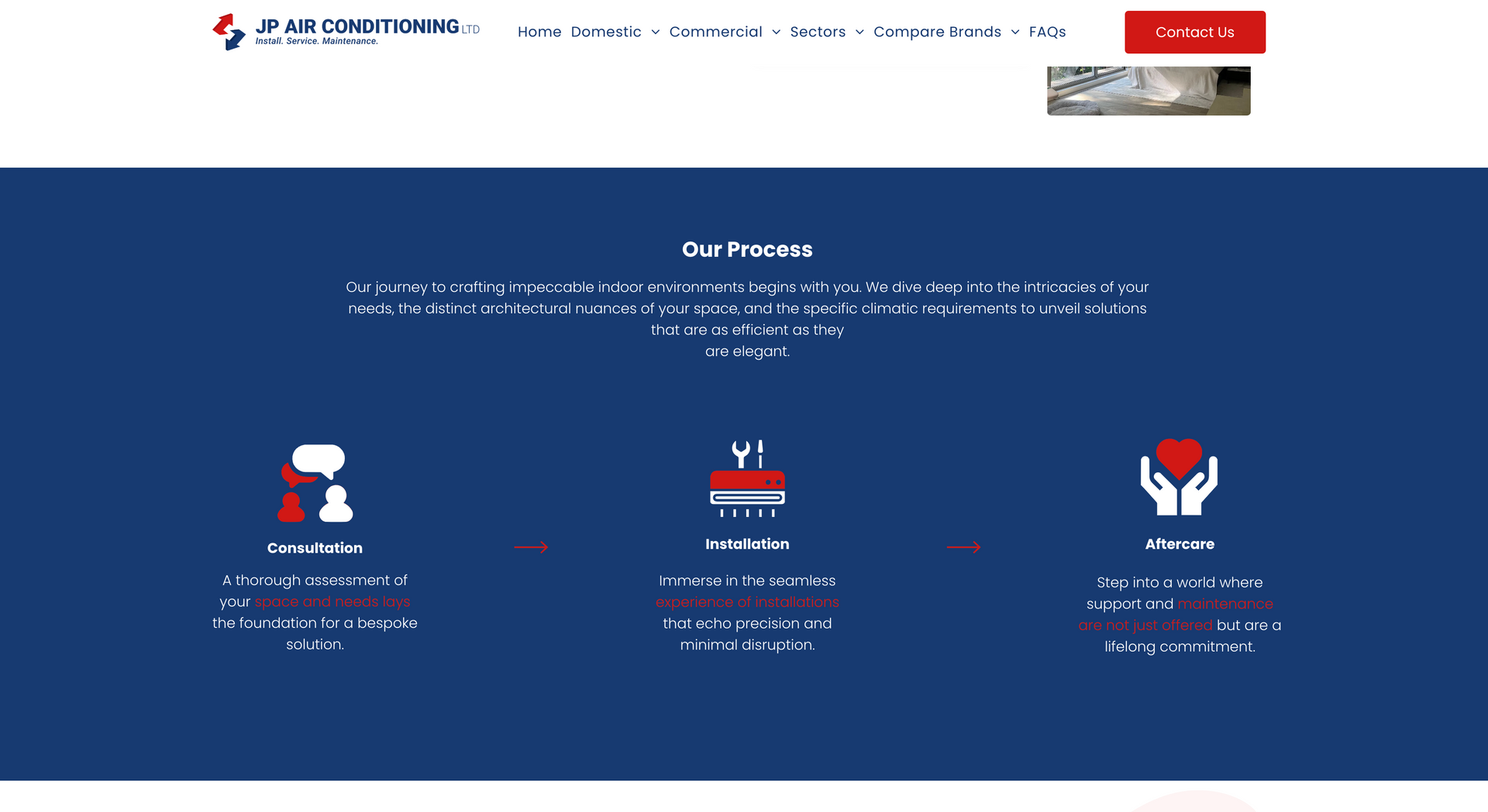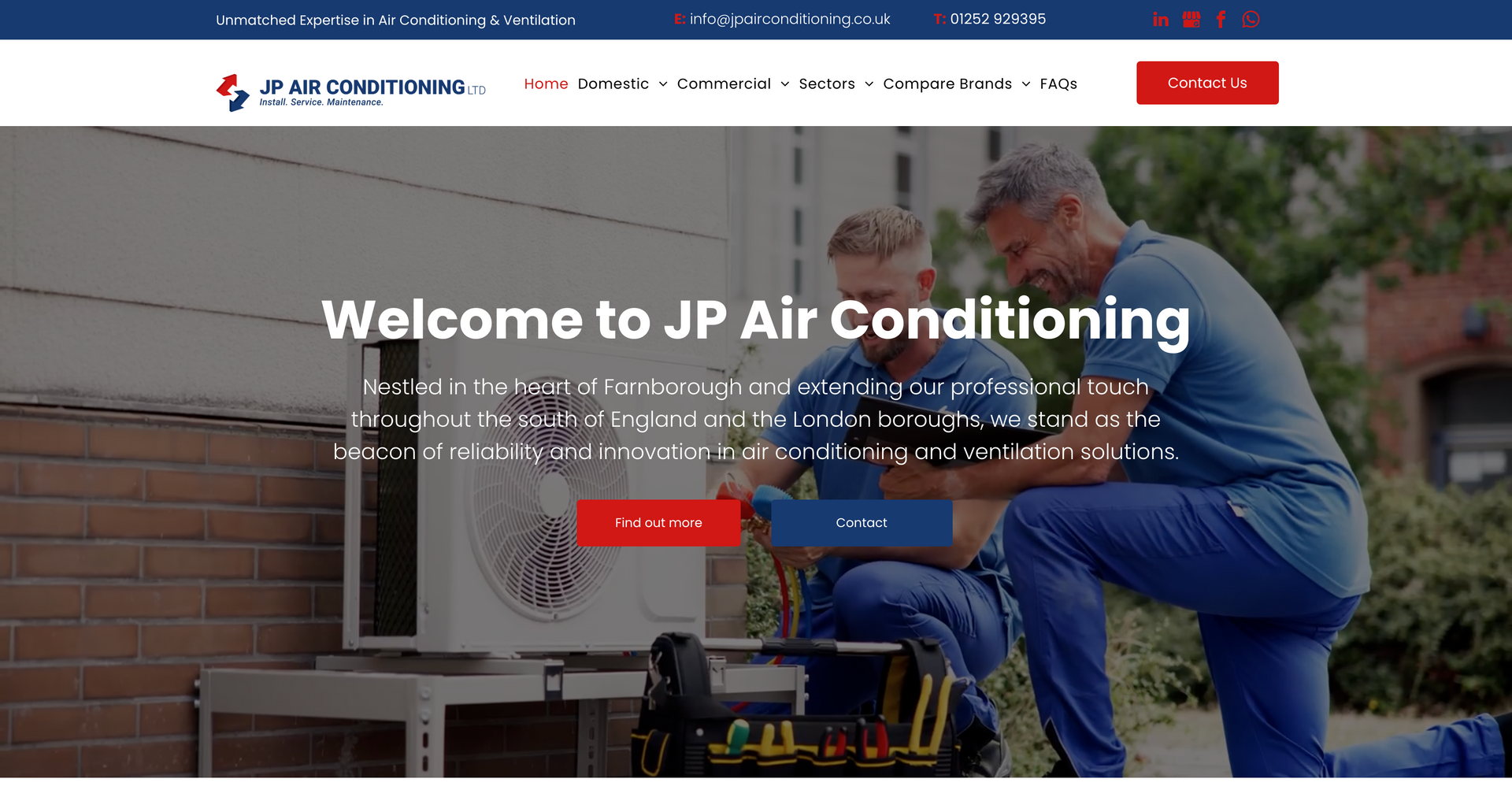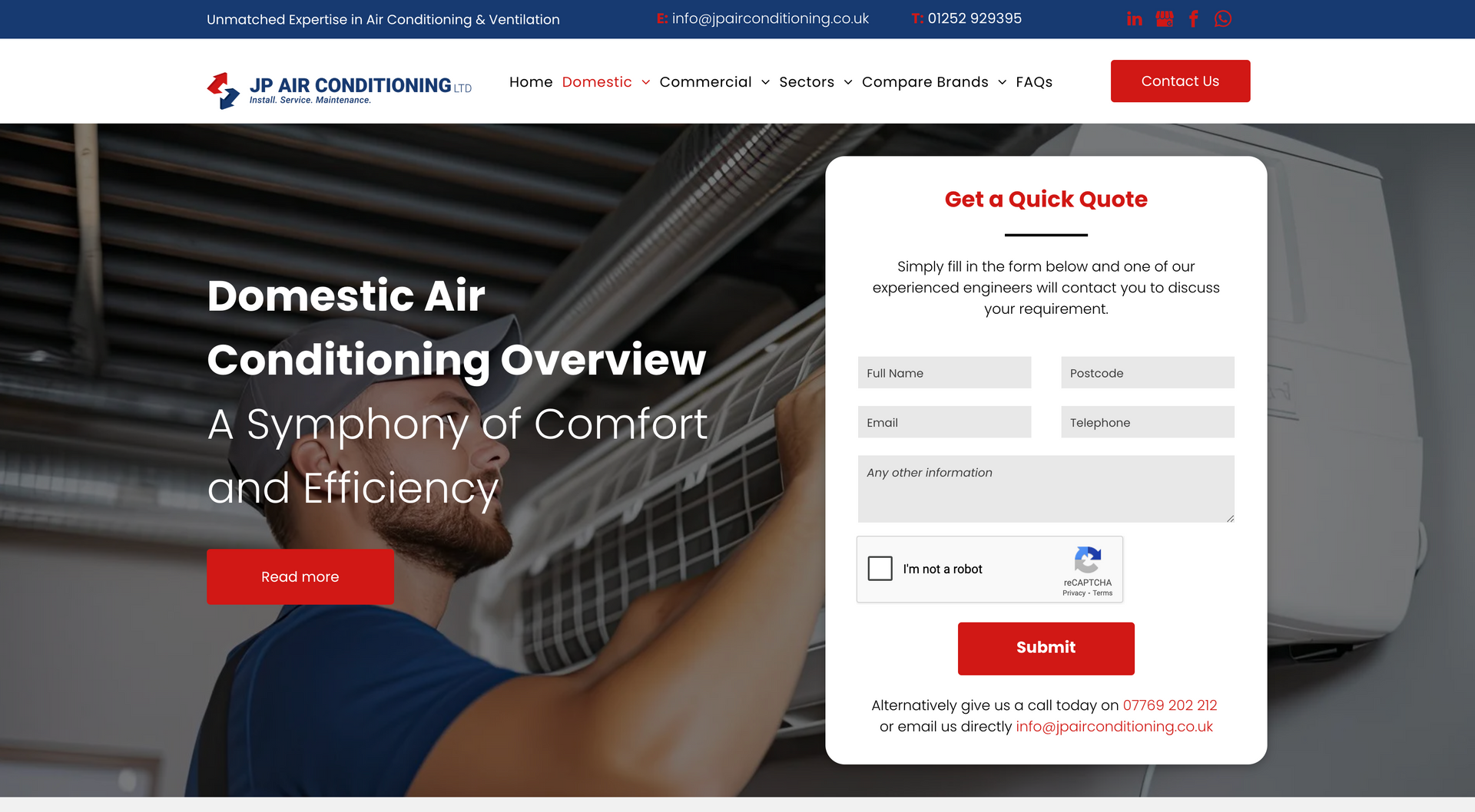 JP Air conditioning offers air conditioning and ventilation services across all sectors from homes to museums. As displayed in the website, JP Air conditioning offers a comprehensive consultation prior to installation as well as post-installation support. A portfolio of services on the website shows the incorporation of Air Con units into the design of the room