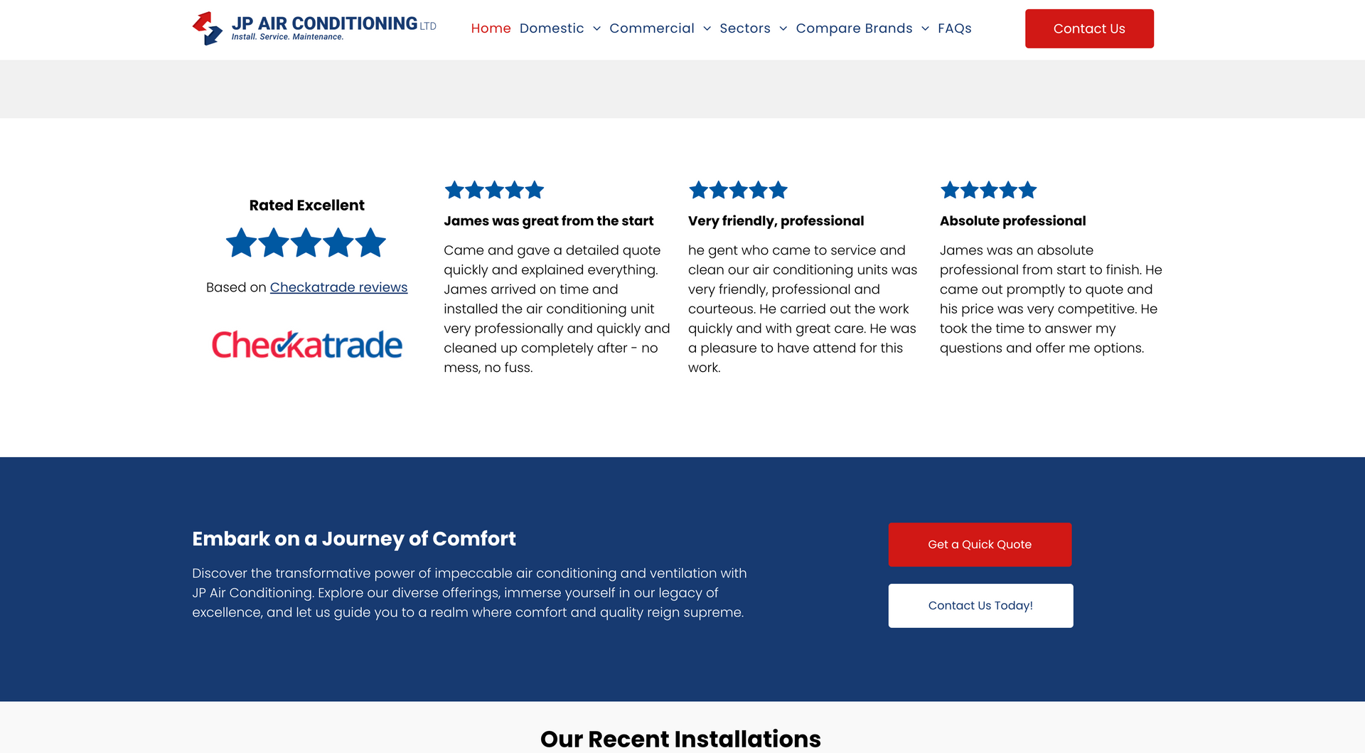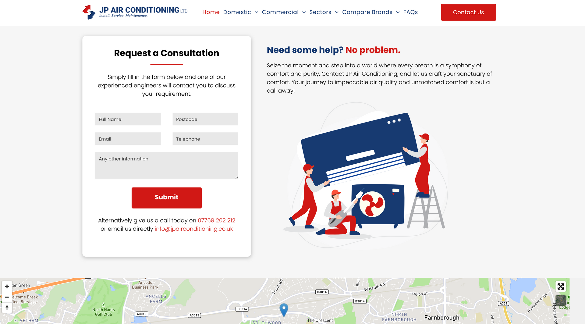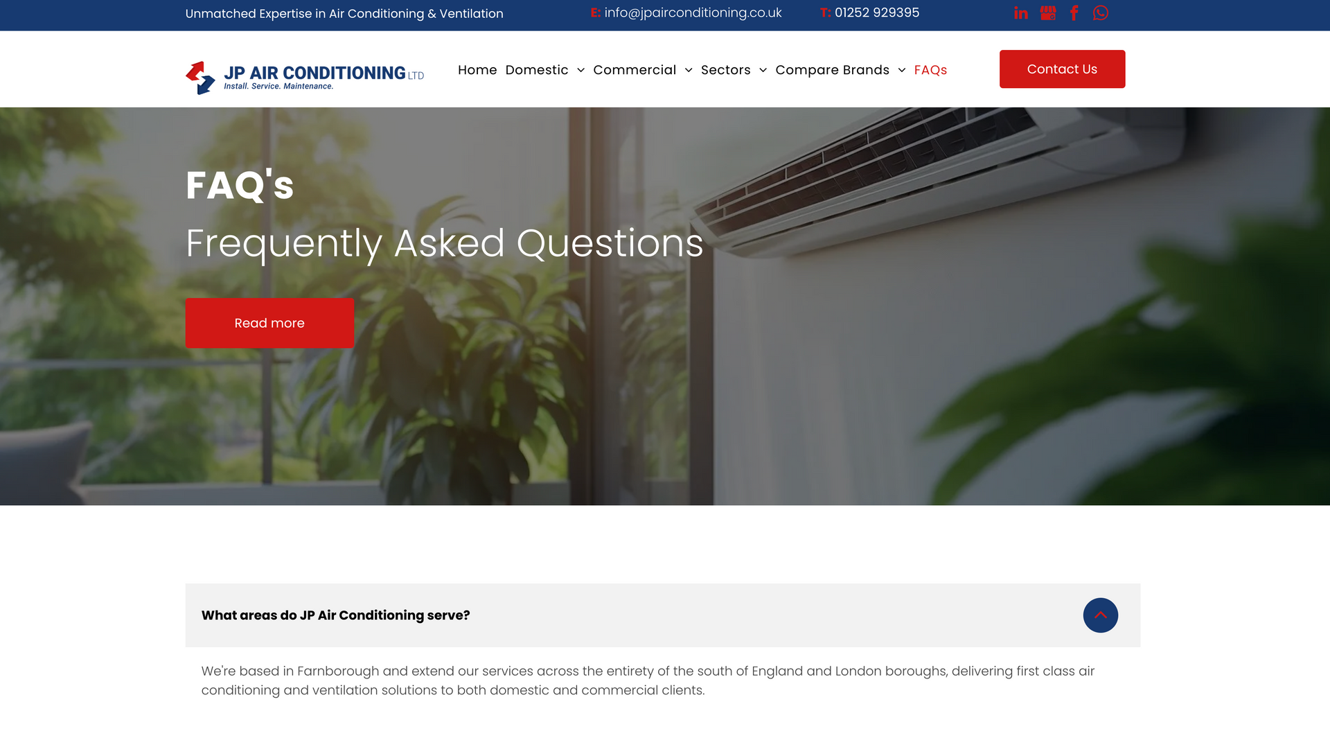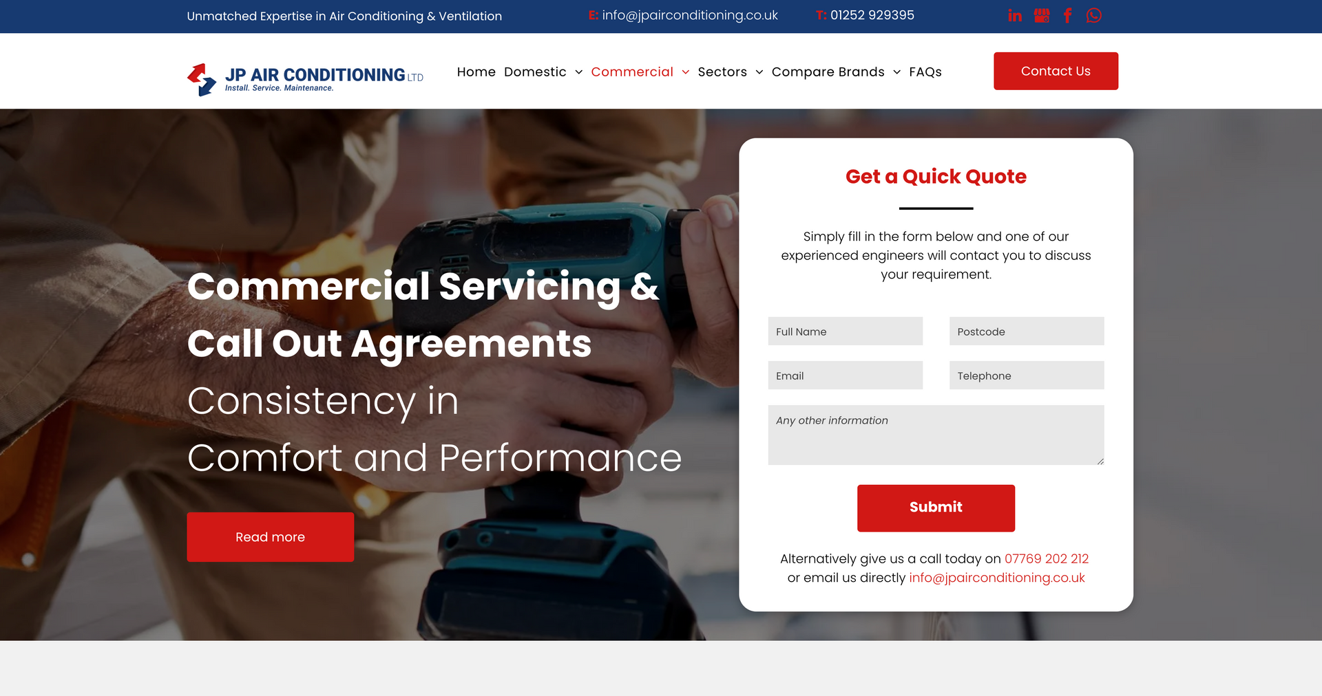 JP Air conditioning offers air conditioning and ventilation services across all sectors from homes to museums. As displayed in the website, JP Air conditioning offers a comprehensive consultation prior to installation as well as post-installation support. A portfolio of services on the website shows the incorporation of Air Con units into the design of the room