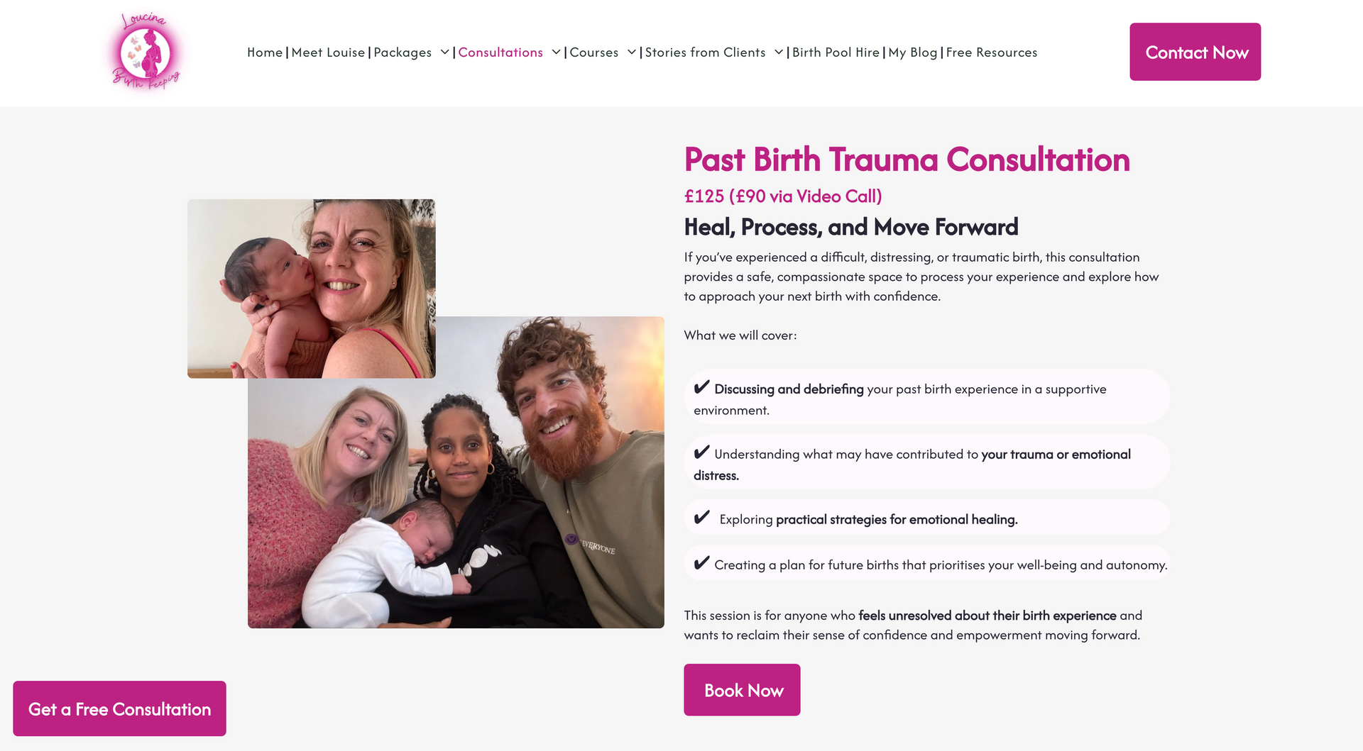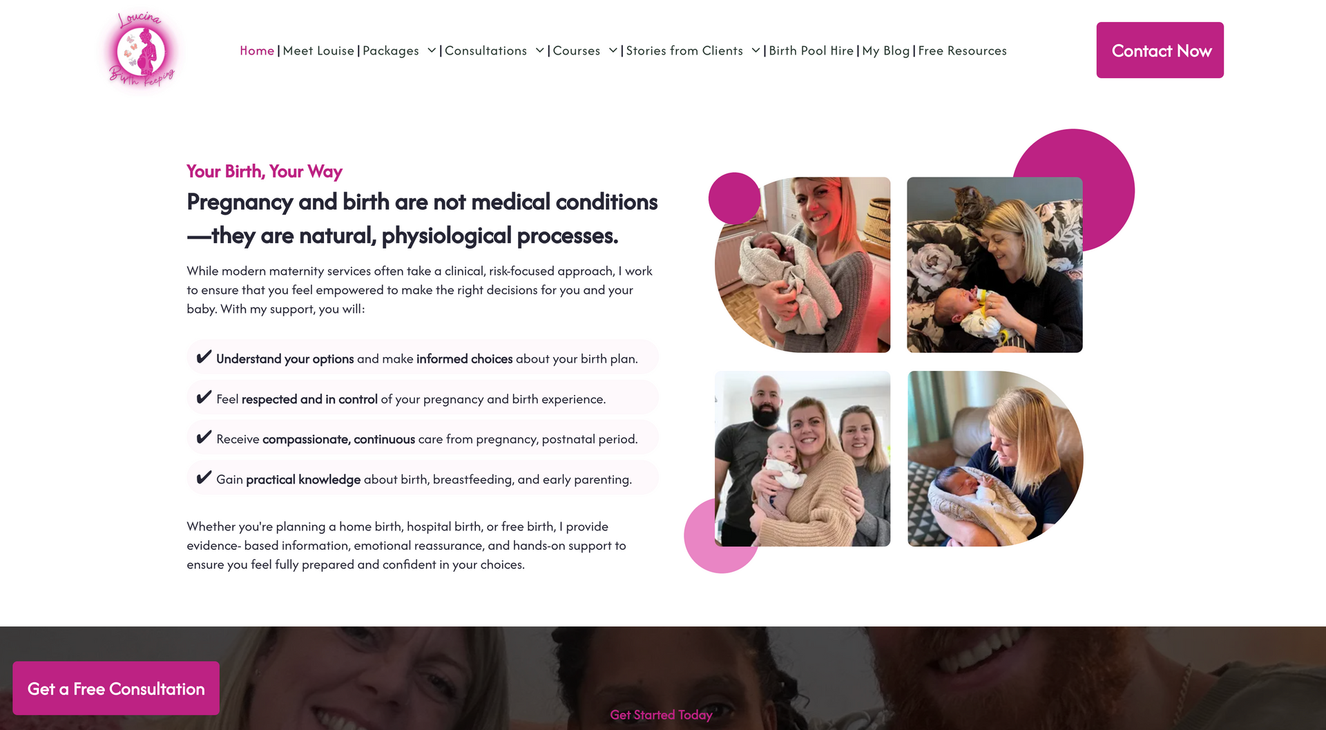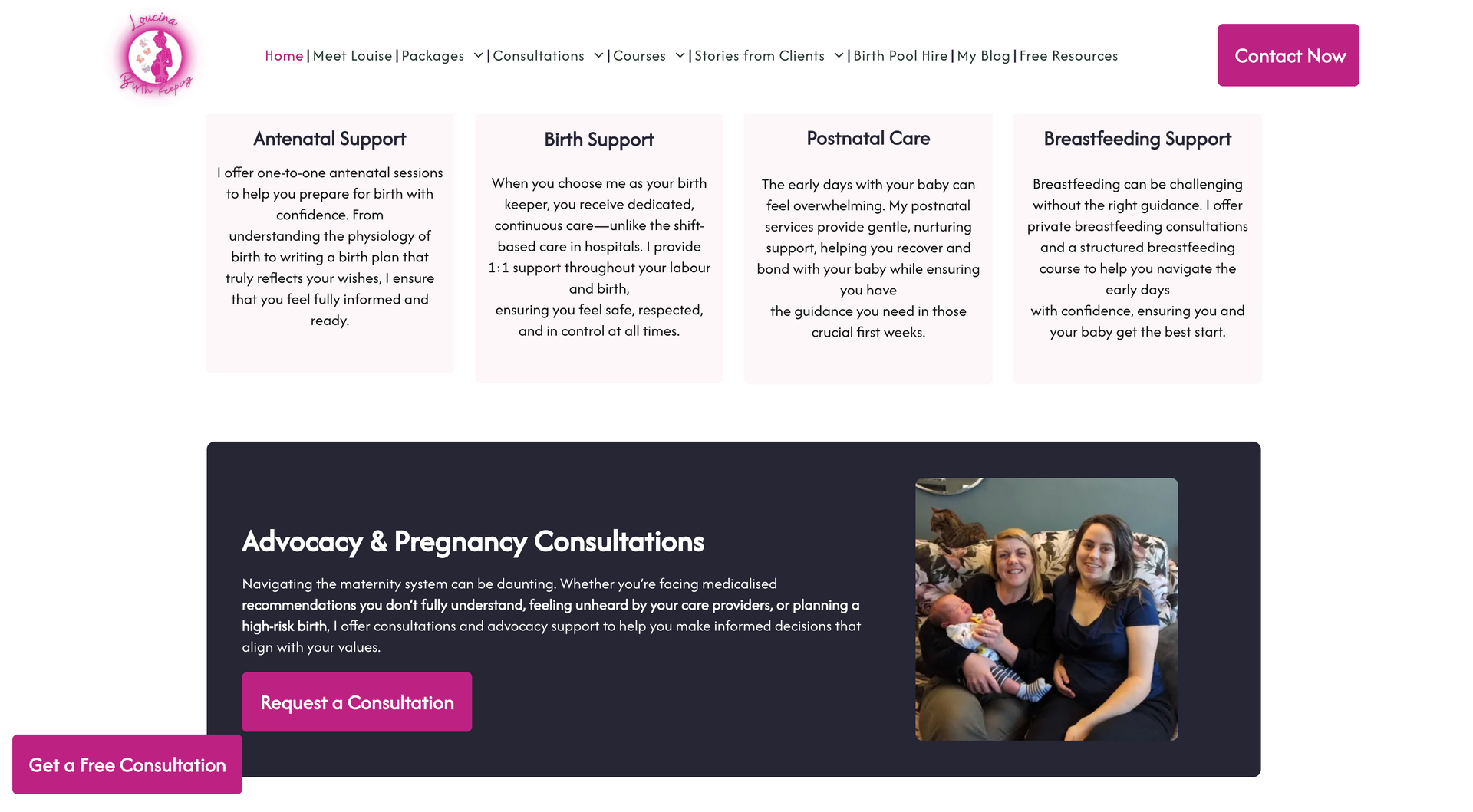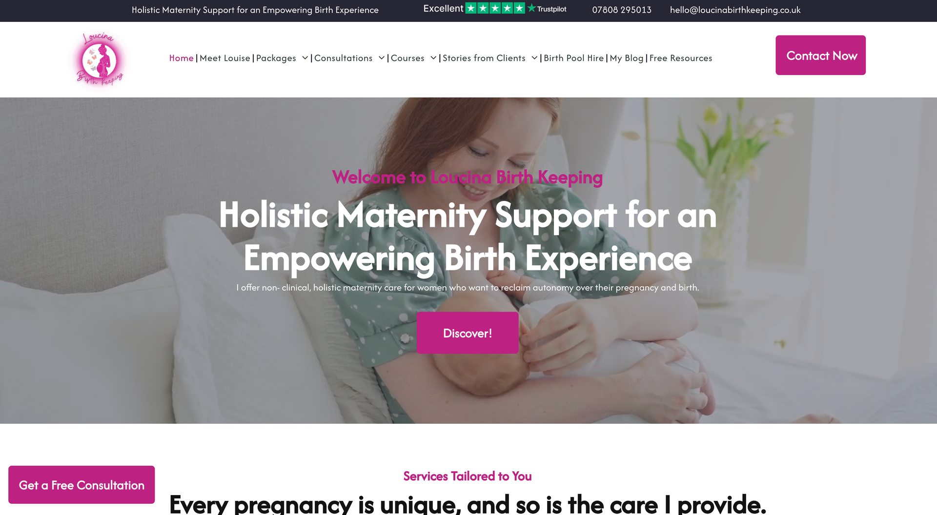 Loucina’s birthkeeping offers holistic maternity care before and after birth alongside courses and birthing pool renting. Marcell Media has incorporated all of the separate offerings and tied them together in one easy website. Because of the nature of the services, it is incredibly important to have client testimonials - this was one of the priorities for the website, including as many stories as possible to build trust between the service provider and potential customers.