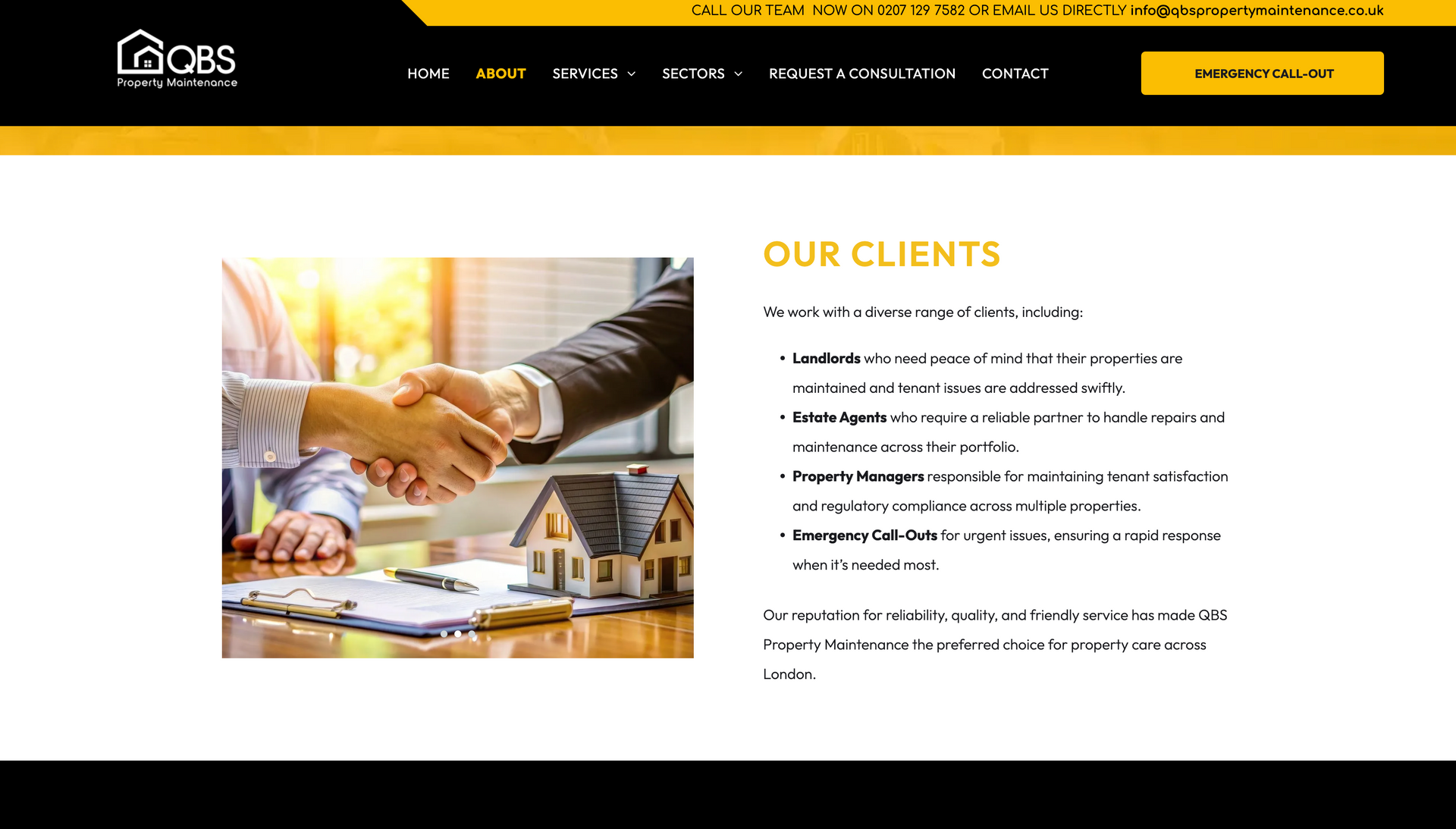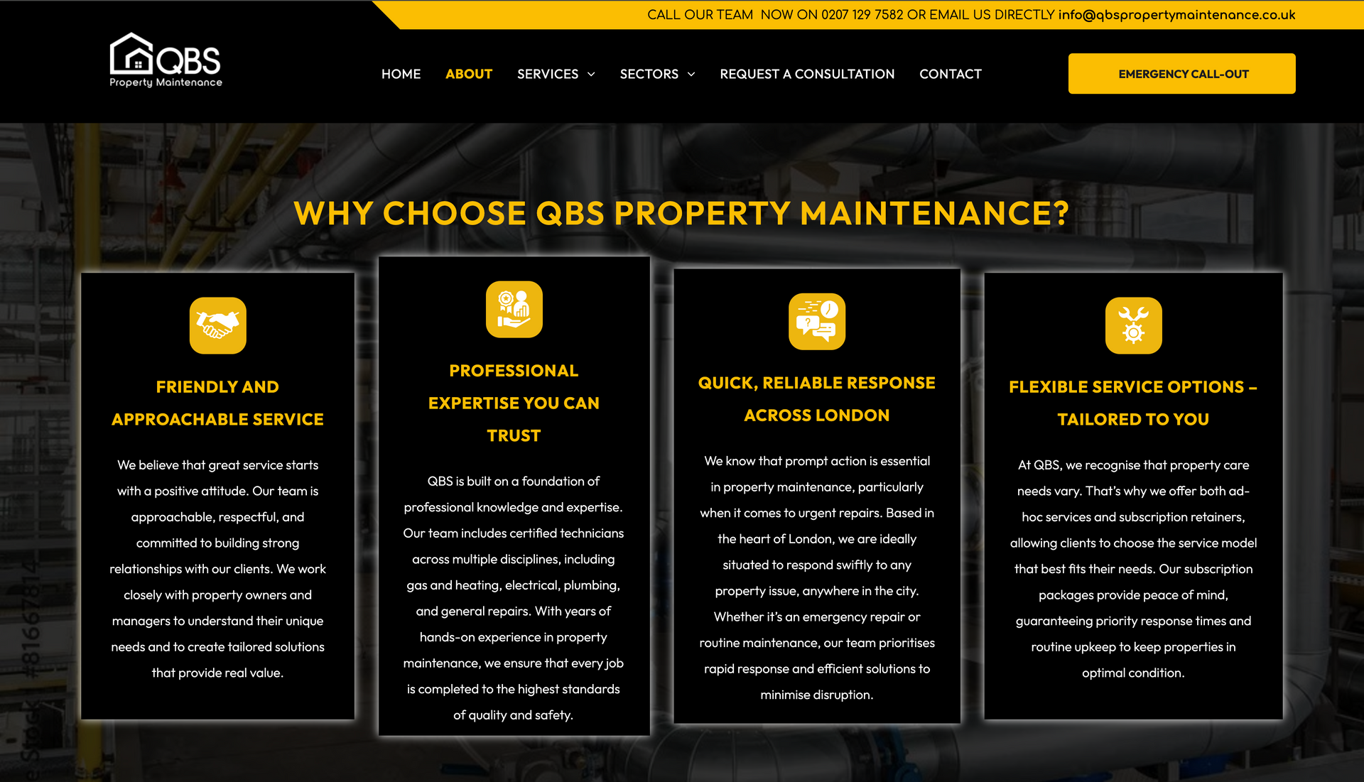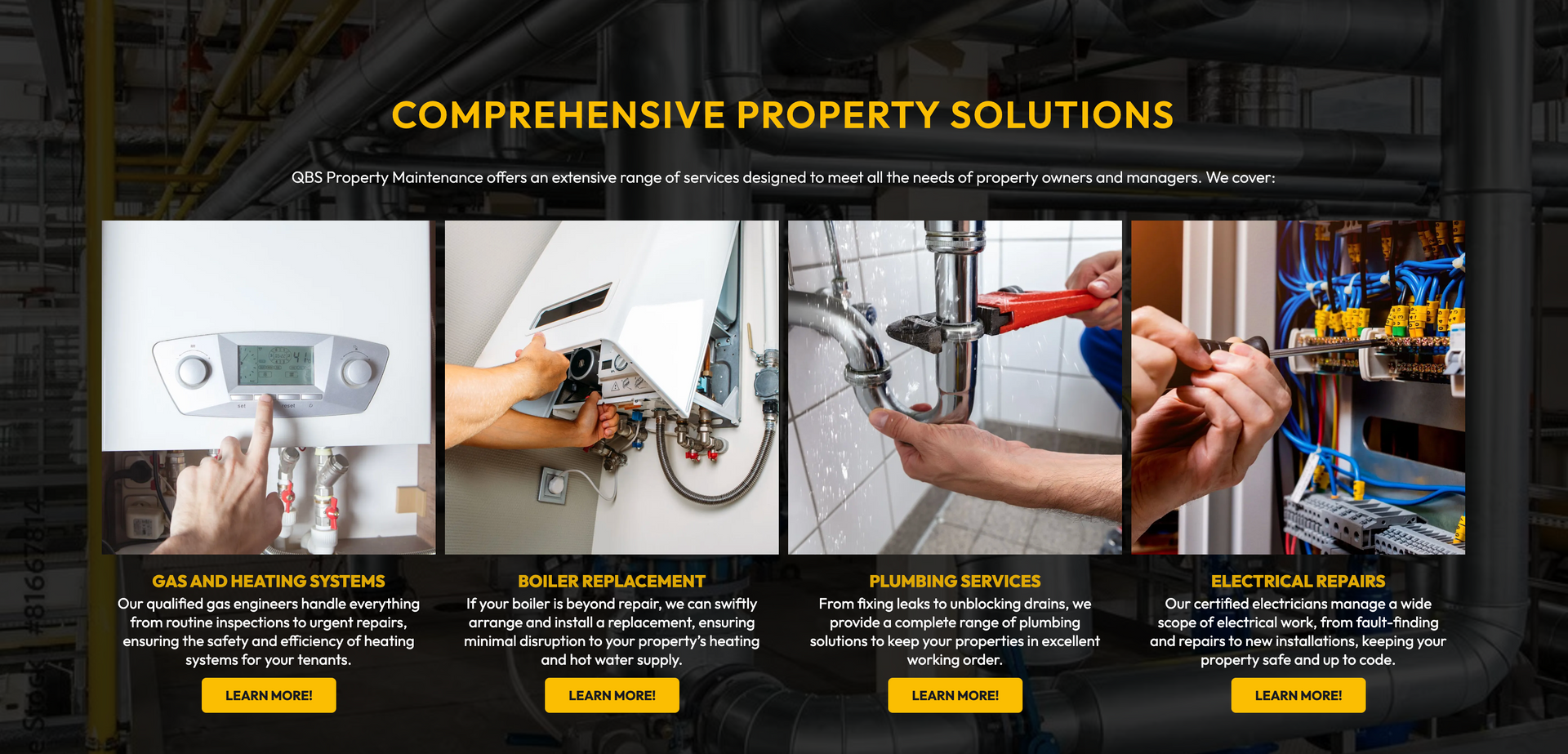 QBS offer reliable, compliant repairs and maintenance following the UK standard for legally compliant homes. Hiring QBS allows landlords, Estate Agents and Property Managers peace of mind knowing the properties under their responsibility are maintained to a comfortable standard. The website has been broken down into different sectors to easily navigate for the needs of your property and tenancy type.