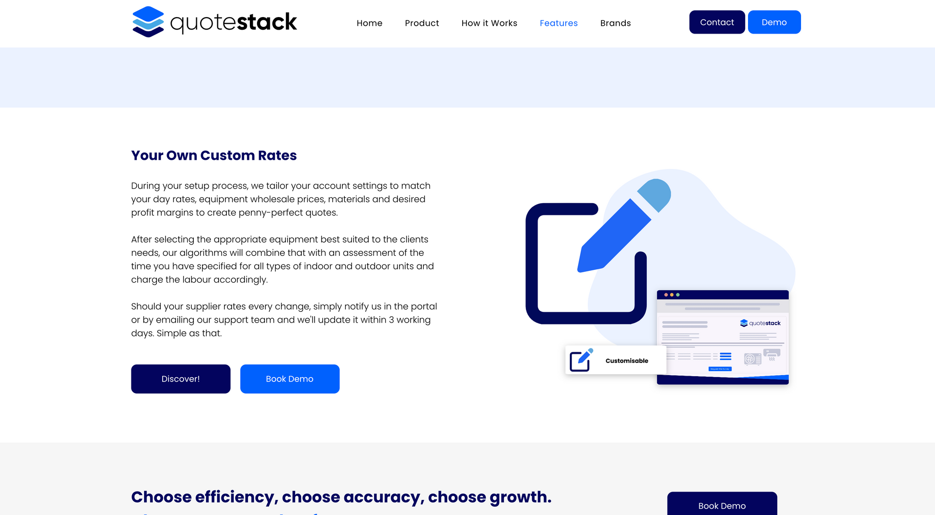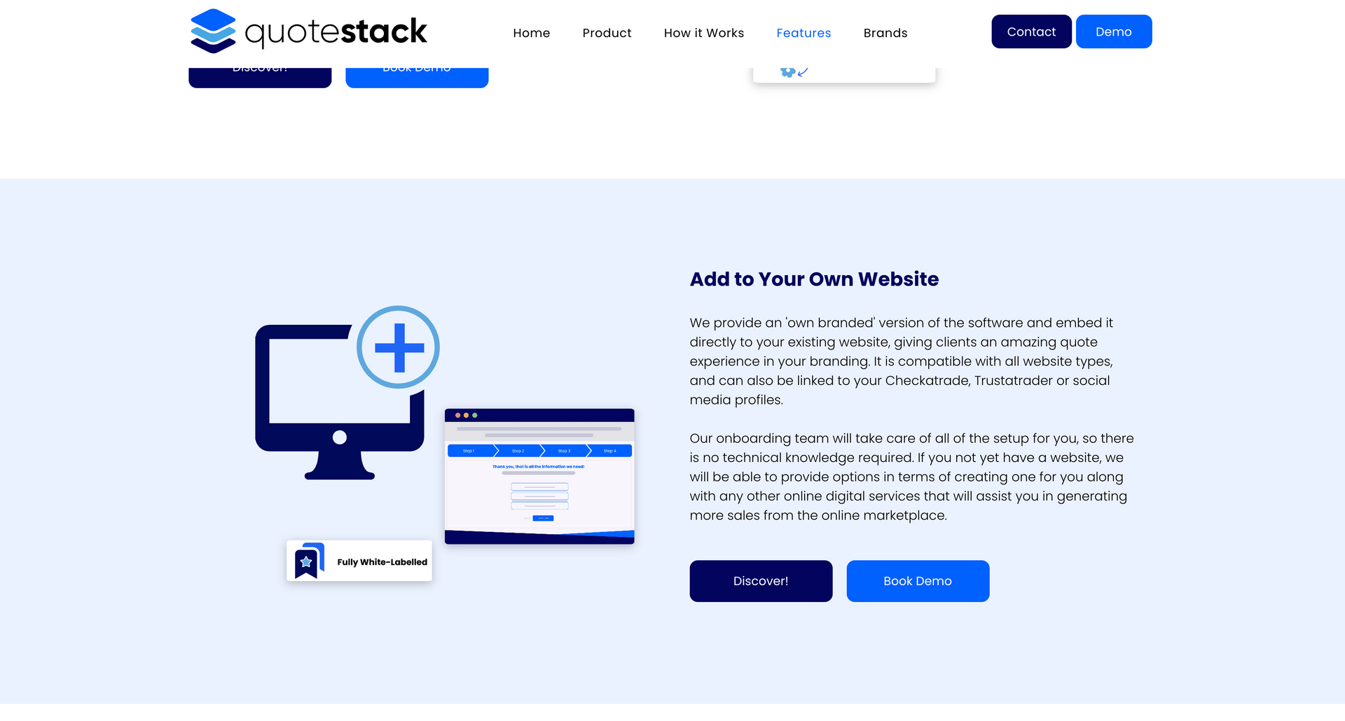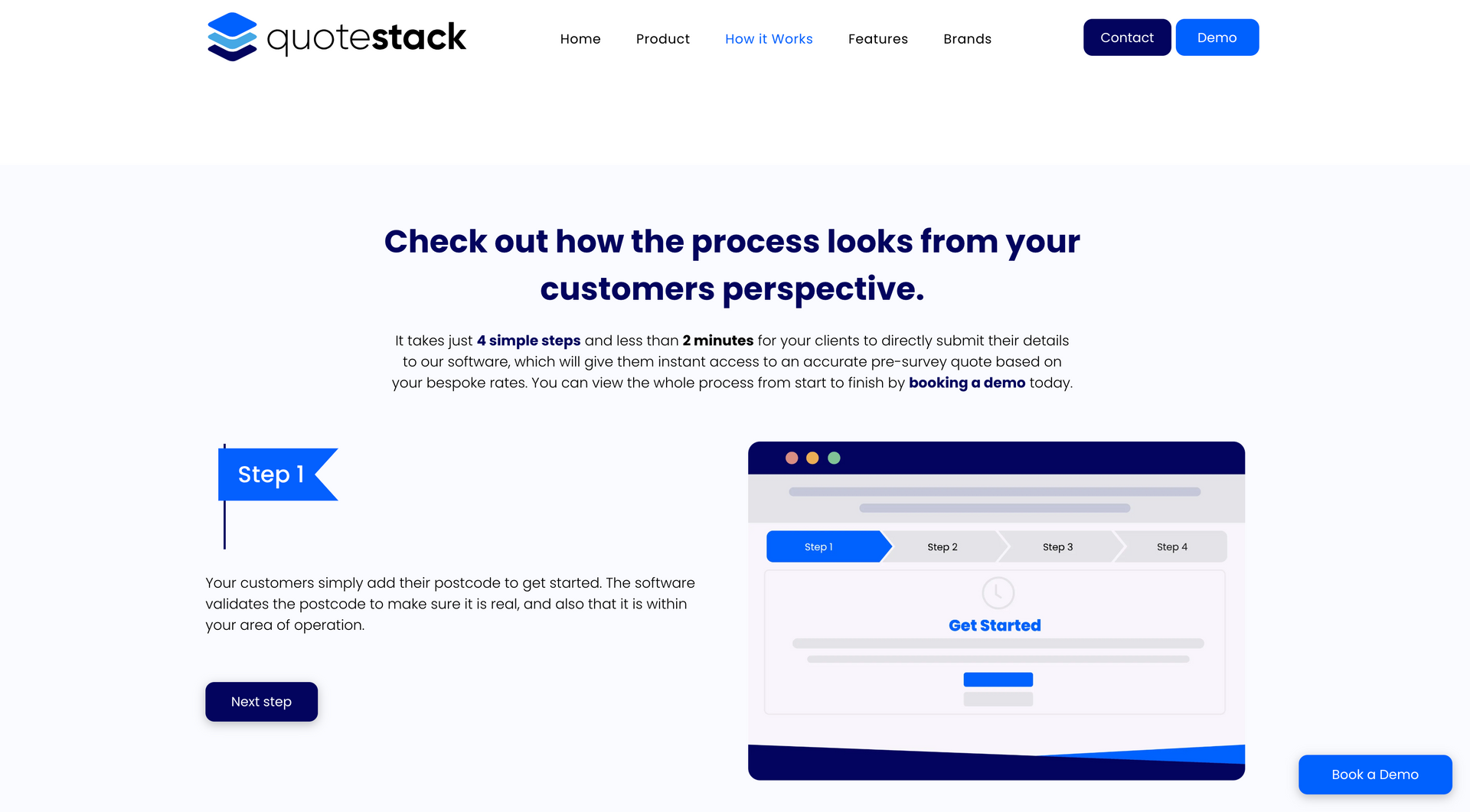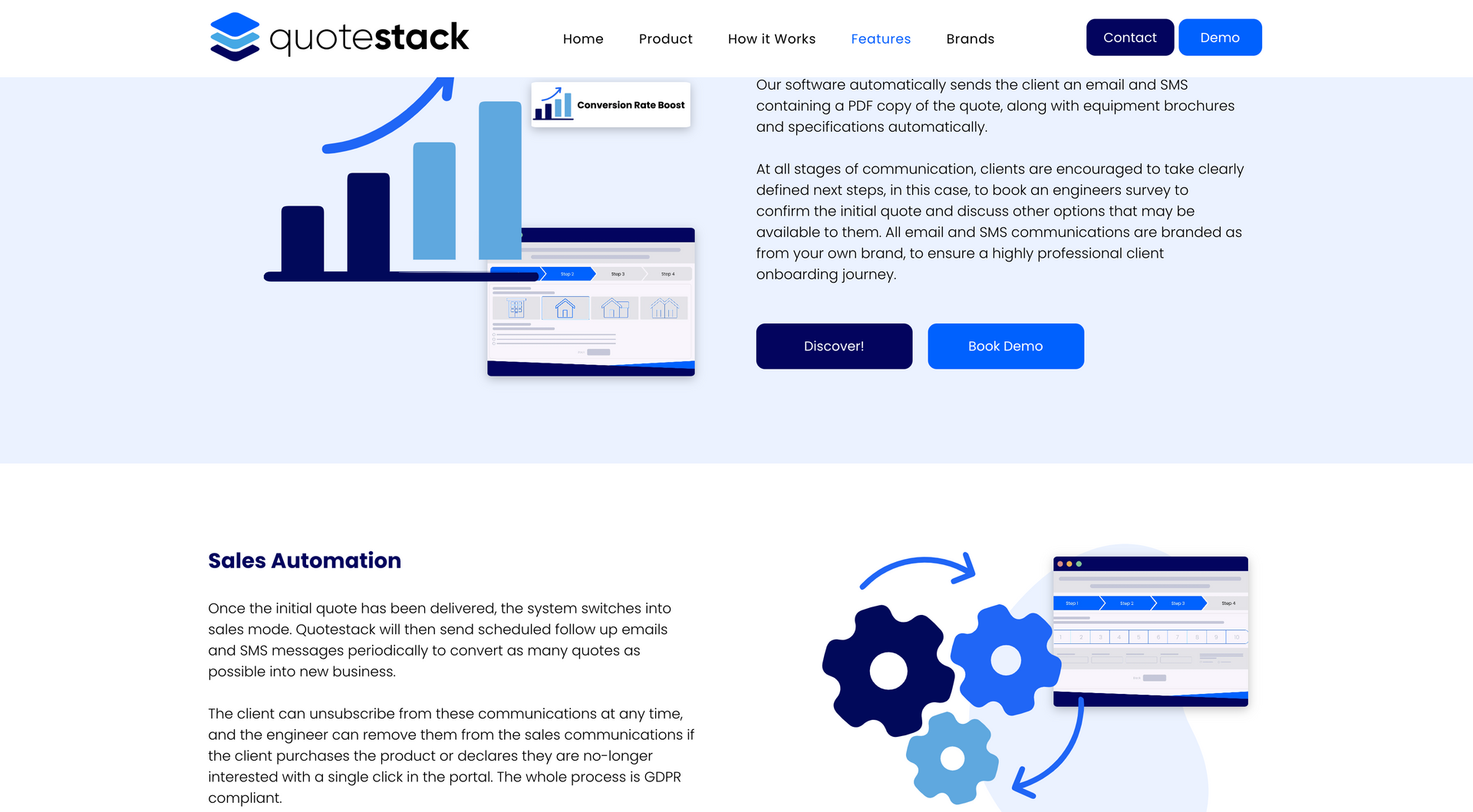 ‘Quote Stack helps air conditioning engineers make more money” - the Qoute stack calculator has been designed using AI to calculate the most efficient and cost effective solutions to air conditioning for a specific property and client. The product here is the calculator, which can be purchased by air conditioning firms and used on their website, allowing the customer to input information and calculating the best possible route and cost of installation, passing this information on to the company. Communicating these steps and the benefits to the client in a clear and concise way was essential for the brand. This was carried out with a step by step guide, uninterrupted by cluttered widgets and pop ups.
