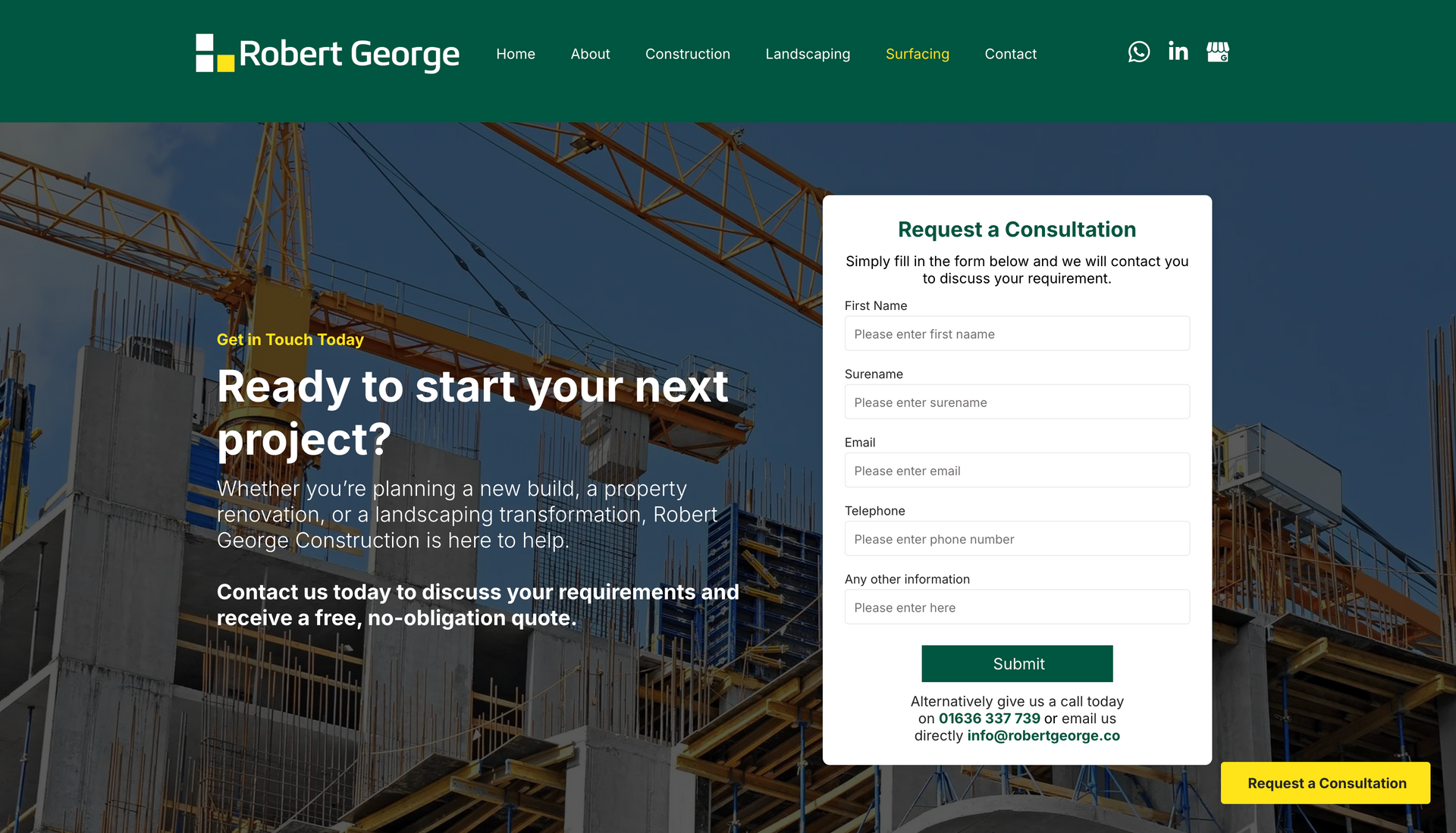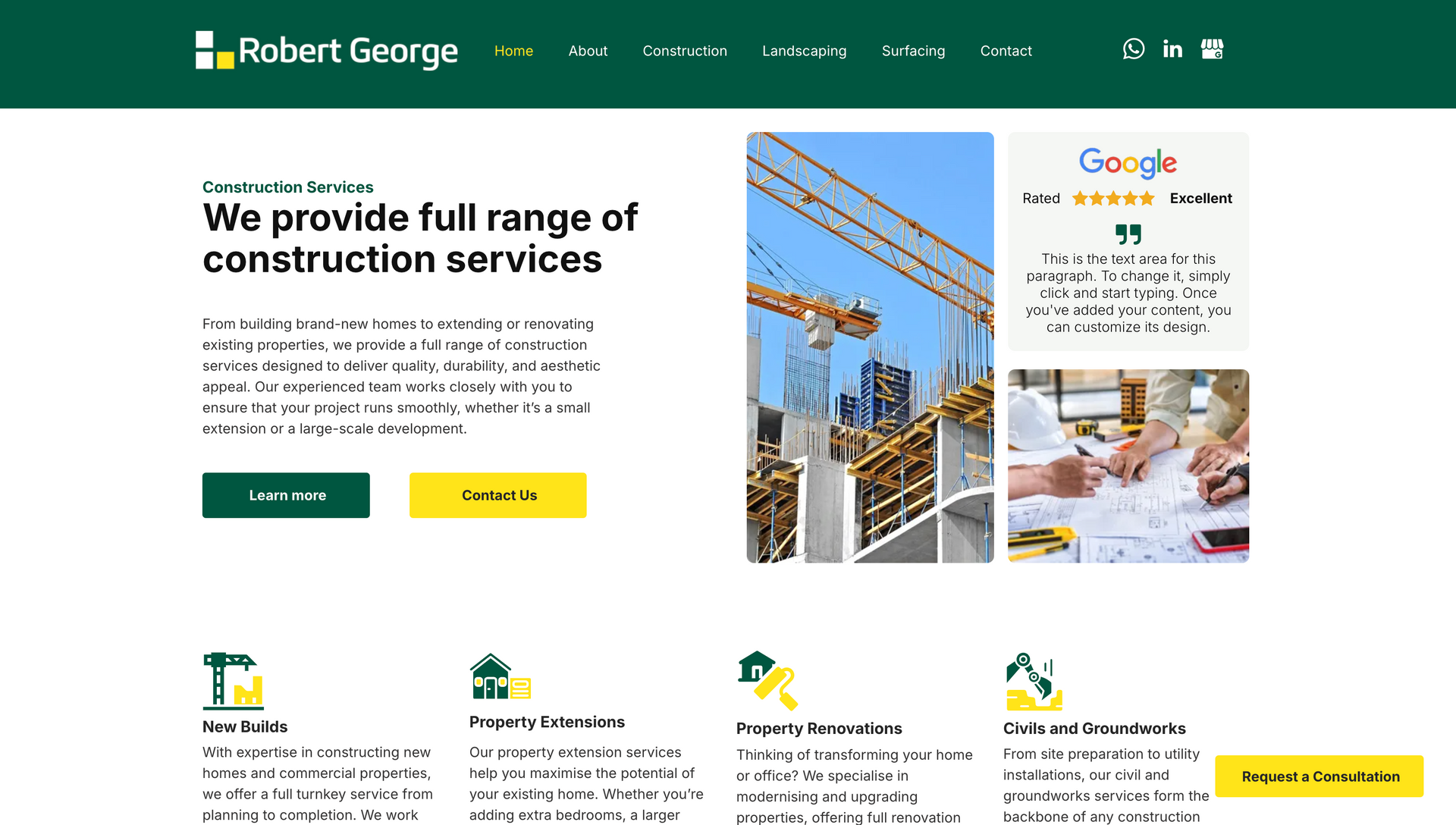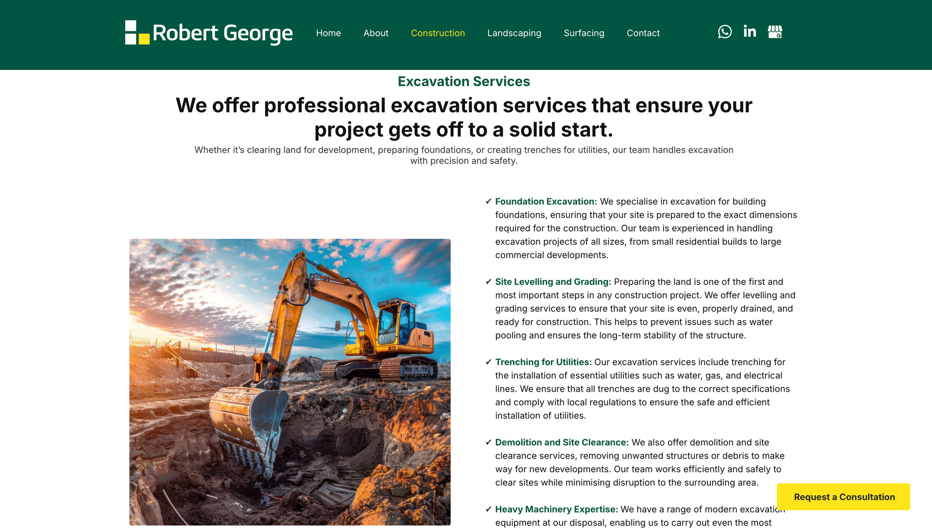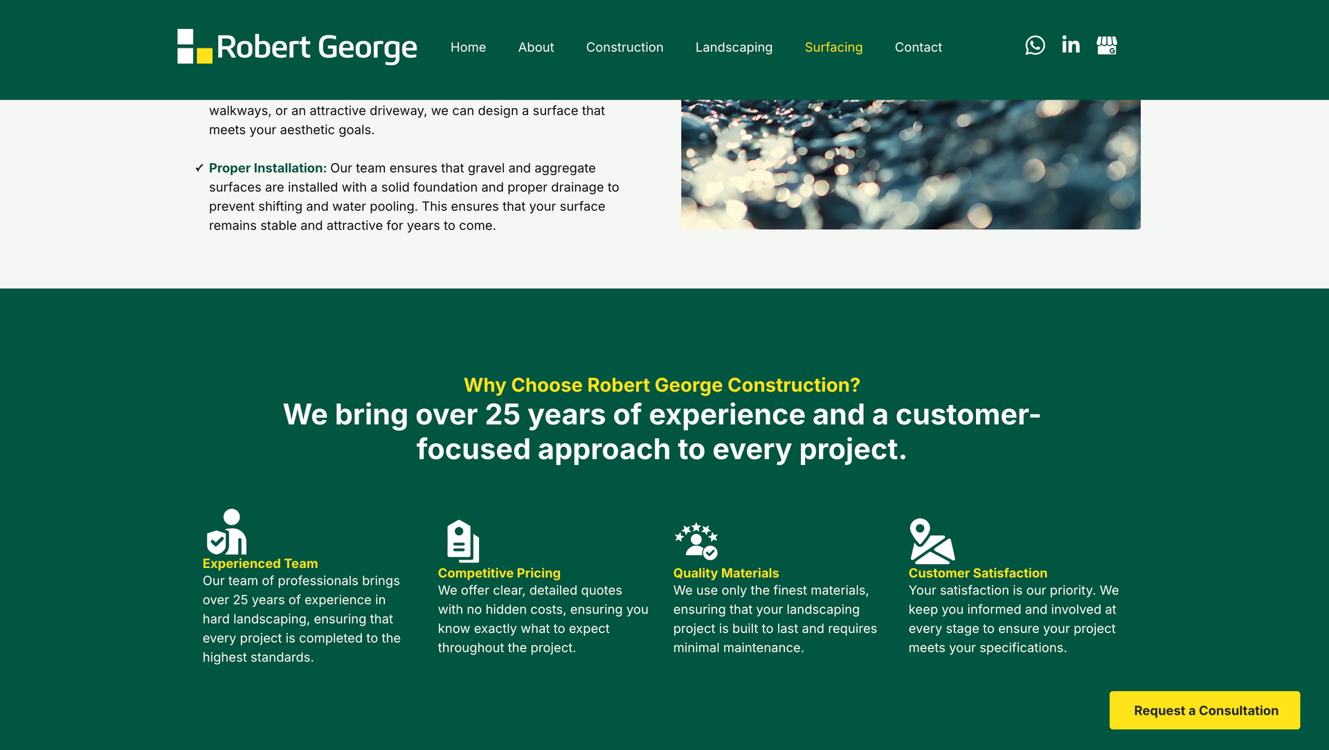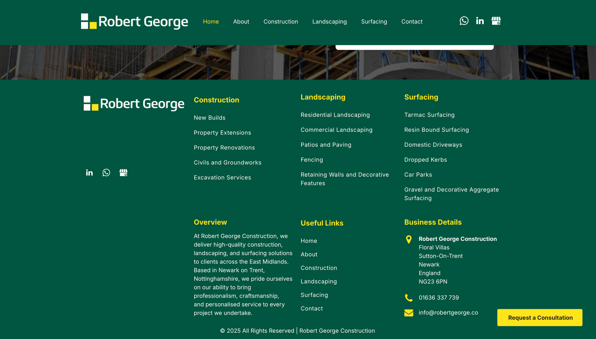 Robert George is a construction, surfacing and landscaping company. Specific to this company is that they are regionally focused, unlike many companies looking to expand nationwide Robert George is focused on understanding and meeting the needs of Nottinghamshire. The focus of this piece was to showcase services and create trust between the service supplier and customer using a transparent pricing system.