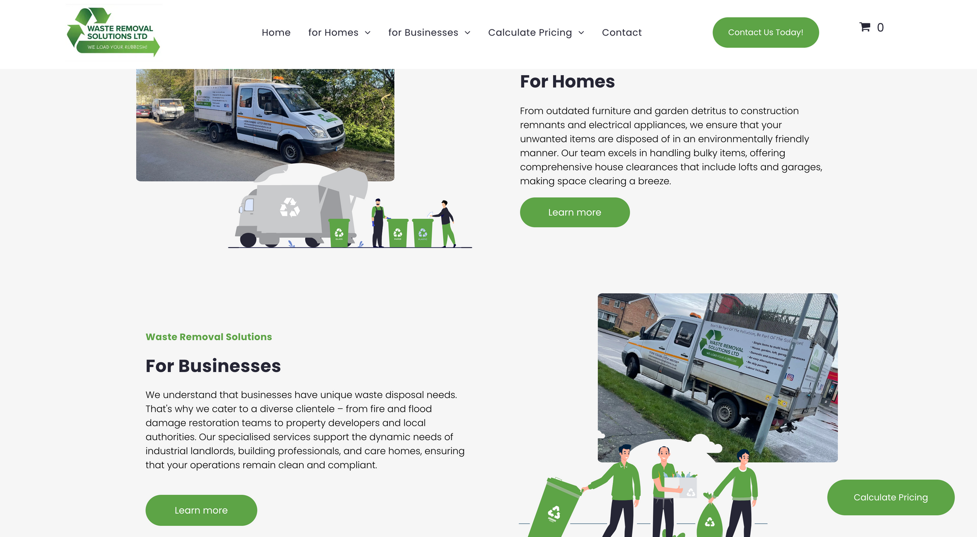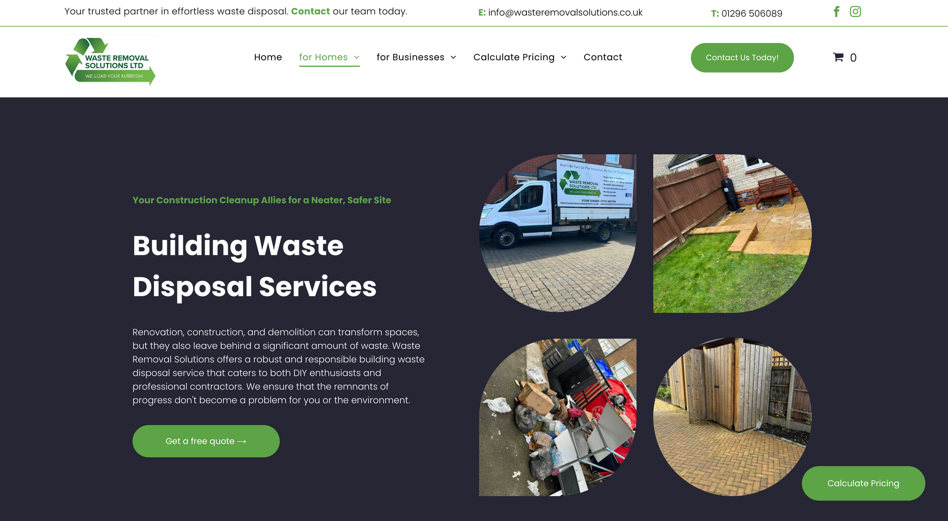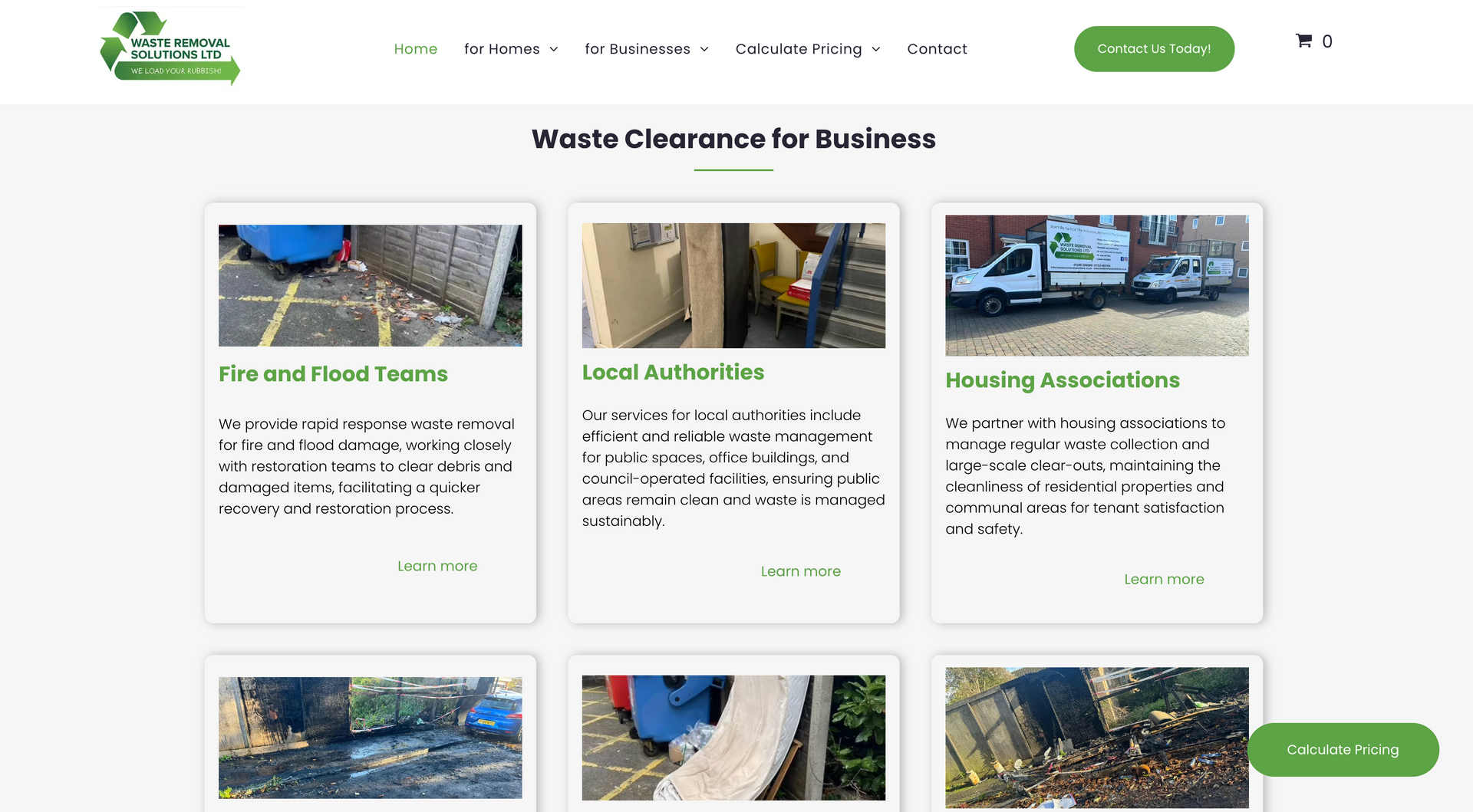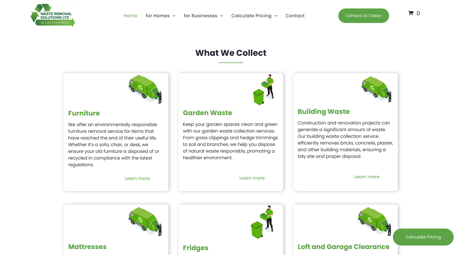 Waste Removal Solutions can be booked to remove rubbish both from the home and commercially with same day booking available. Waste Removal Solutions remove everything from fridges to building waste, always adhering to the legal and environmental policies surrounding waste. The pricing calculator creates transparent pricing and the step by step guide allows you to plan your rubbish removal accordingly.