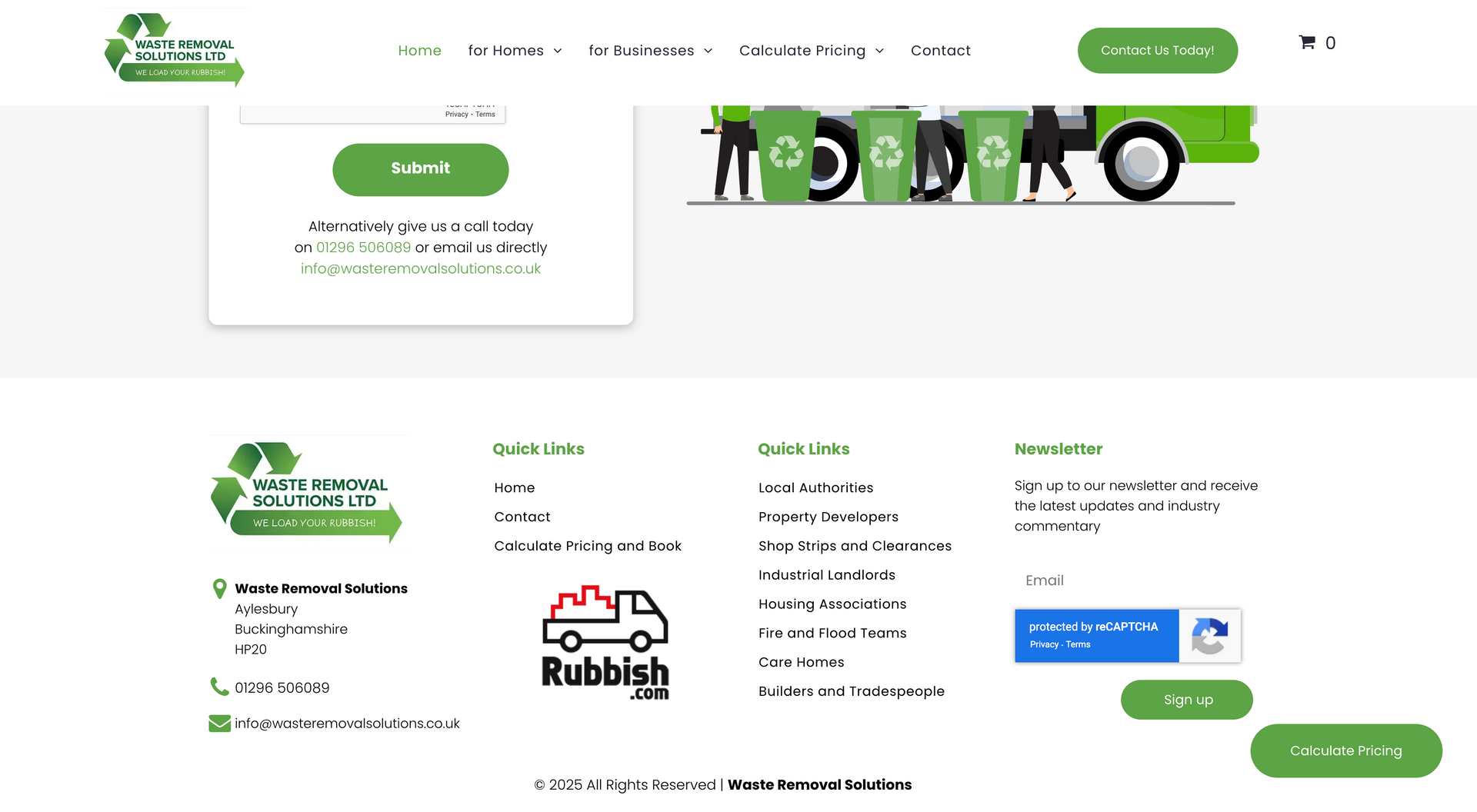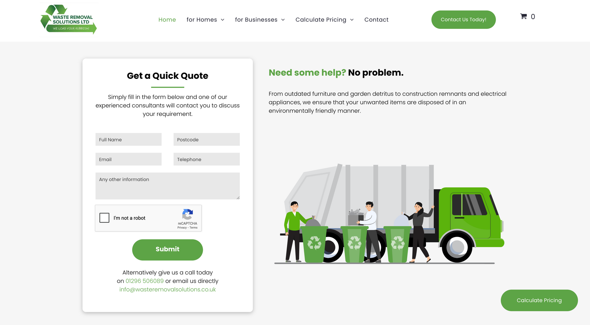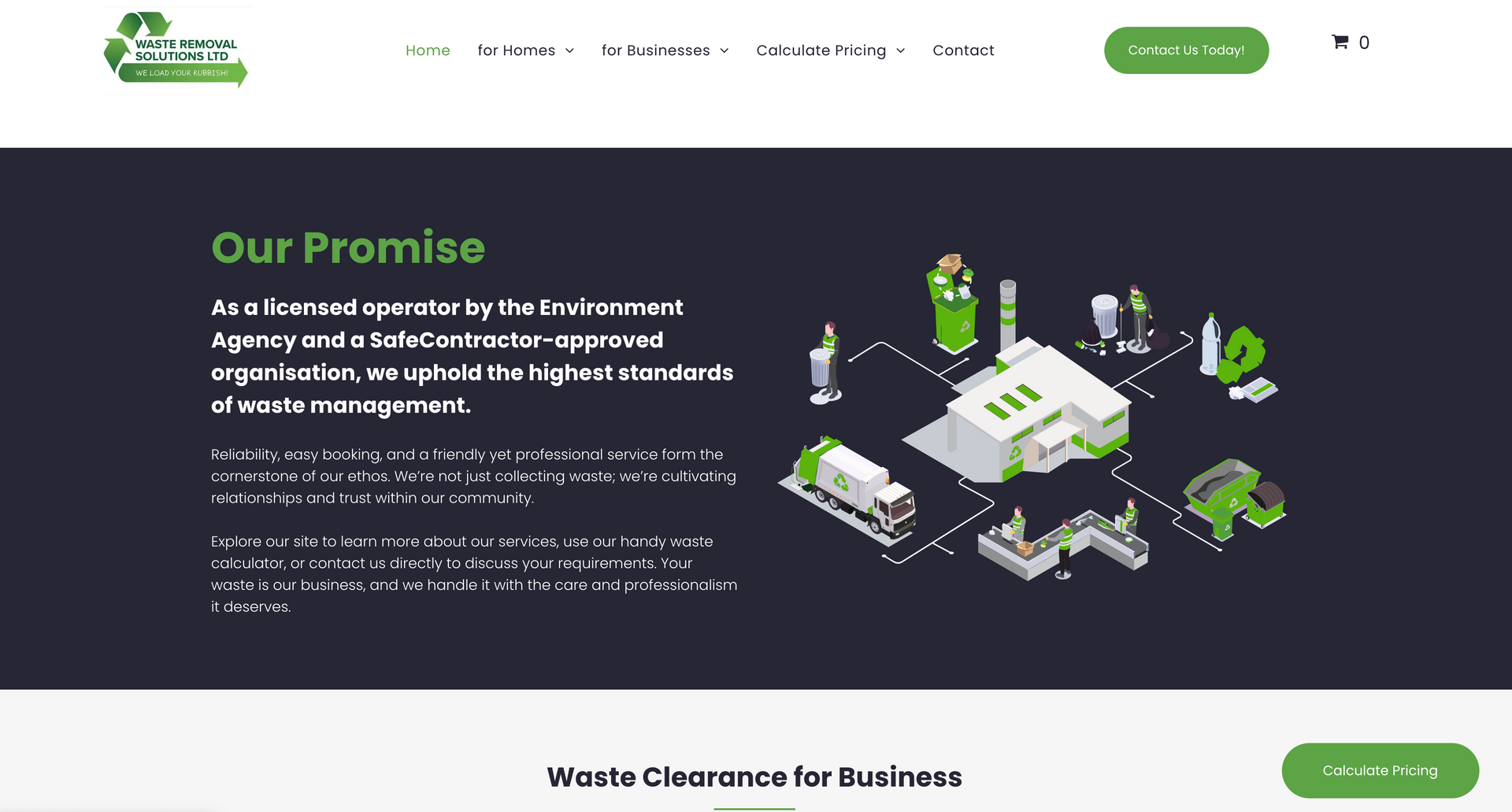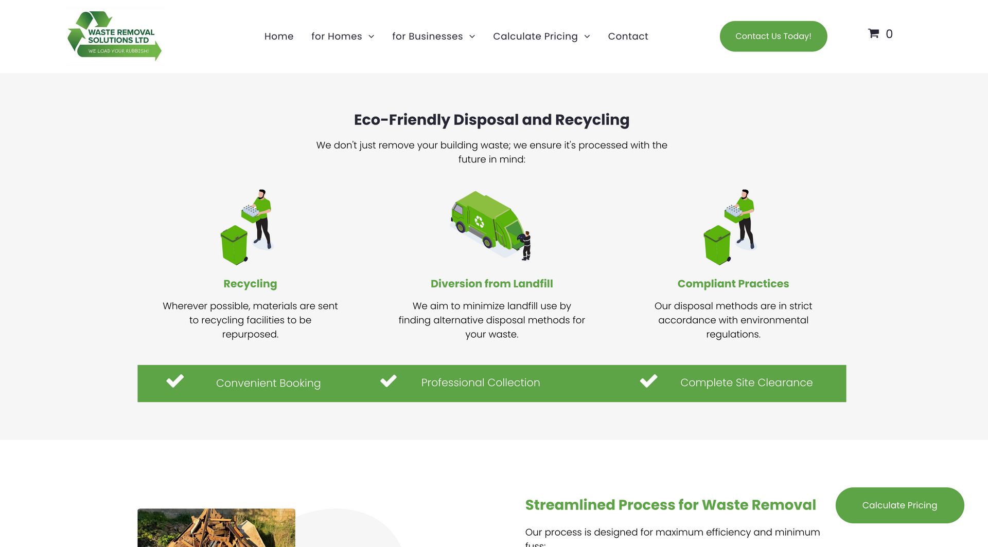 Waste Removal Solutions can be booked to remove rubbish both from the home and commercially with same day booking available. Waste Removal Solutions remove everything from fridges to building waste, always adhering to the legal and environmental policies surrounding waste. The pricing calculator creates transparent pricing and the step by step guide allows you to plan your rubbish removal accordingly.